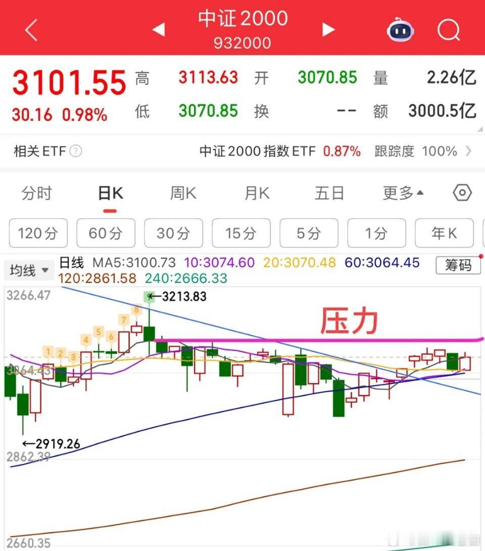 权重股回调对于小盘来说是好事,但关键是接下来能否风格往小盘股切换的问题,这个时候就看中证2000指数能否走出来了,只有中证2000走强,个股才能走出赚钱效应,需要一根标志性阳线。