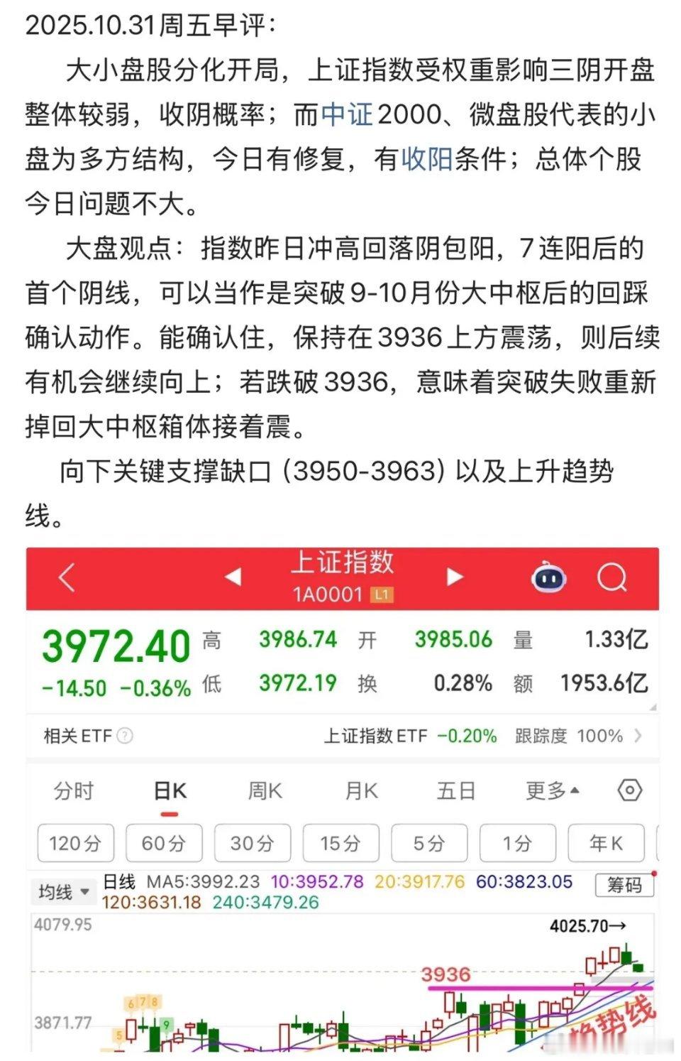 2025.10.31周五午评:指数回调,个股修复,大小盘风格切换了?