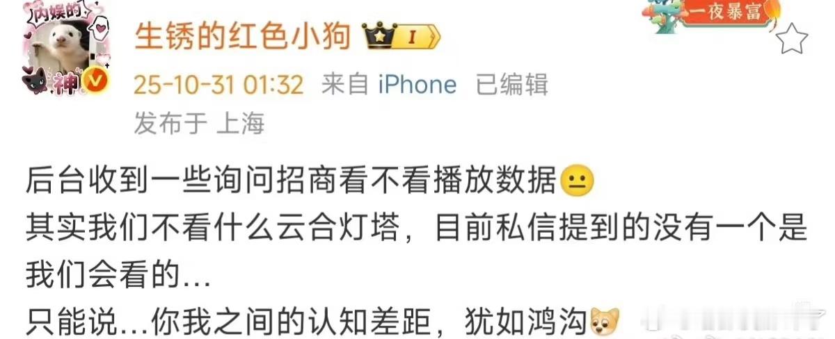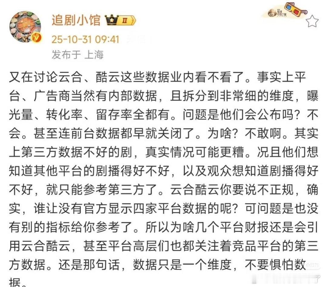反正最近看评论区粉丝kp说“业内不看云合”,就知道这位的担剧扑了(不是给云合吹的