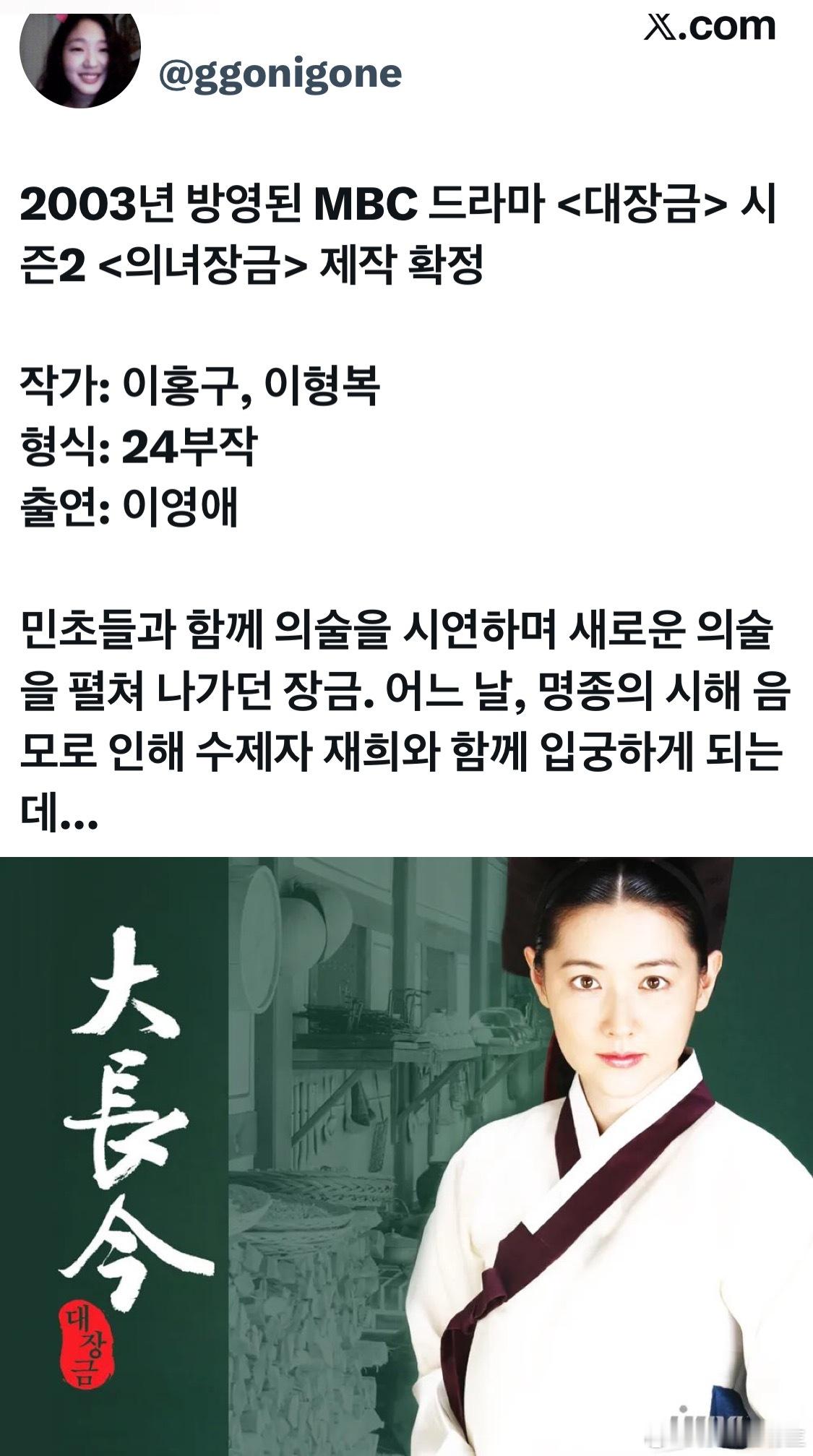 2003年播出的MBC电视剧《大长今》第二季《医女长今》制作确认