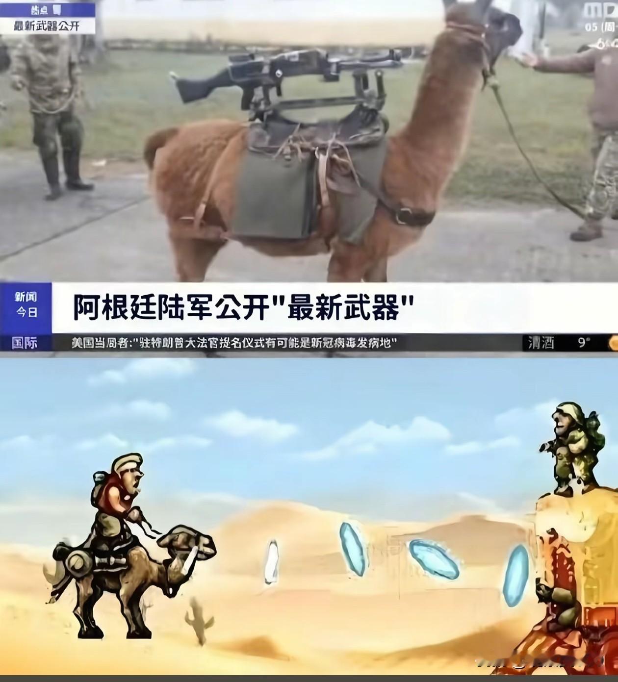【阿根廷陆军亮出“秘密武器”!网友:这装备“驼”力惊人】 正当全球各国都在炫耀高科技无人机和隐形战机时,阿根廷陆军另辟蹊径,公布了一款充满“纯天然”气息的最新武器——骆驼部队! 据悉,这批骆驼被部署在安第斯山脉的高海拔地区,负责协助士兵巡逻和运输物资。在车辆难以通行的崎岖山地,这些“驼”力十足的战友展现出了无与伦比的适应能力,堪称名副其实的“全地形生物载具”。 消息一出,立刻引发全球网友围观热议: · 有网友调侃:“这装备好,零排放、自带导航、还能生物降解!” · 有军迷评论:“这才是真正的‘可持续性’军事力量,比燃油车靠谱。” · 也有人精准吐槽:“优势很明显:不会被黑客入侵,也不会被卫星轻易侦测到。”