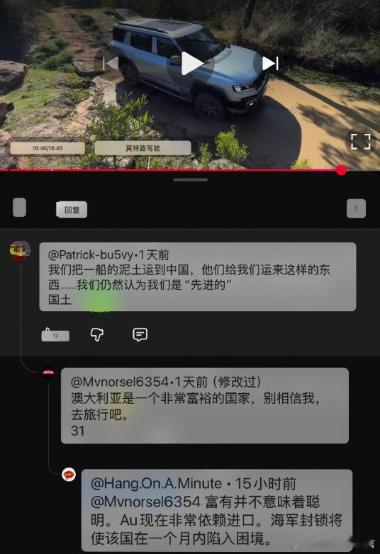 汽车资讯方程豹[超话] 有时候看老外评中国车也挺有意思的,例如这位澳洲车主评价自己的方程豹豹 5,评论区回复值得回味。