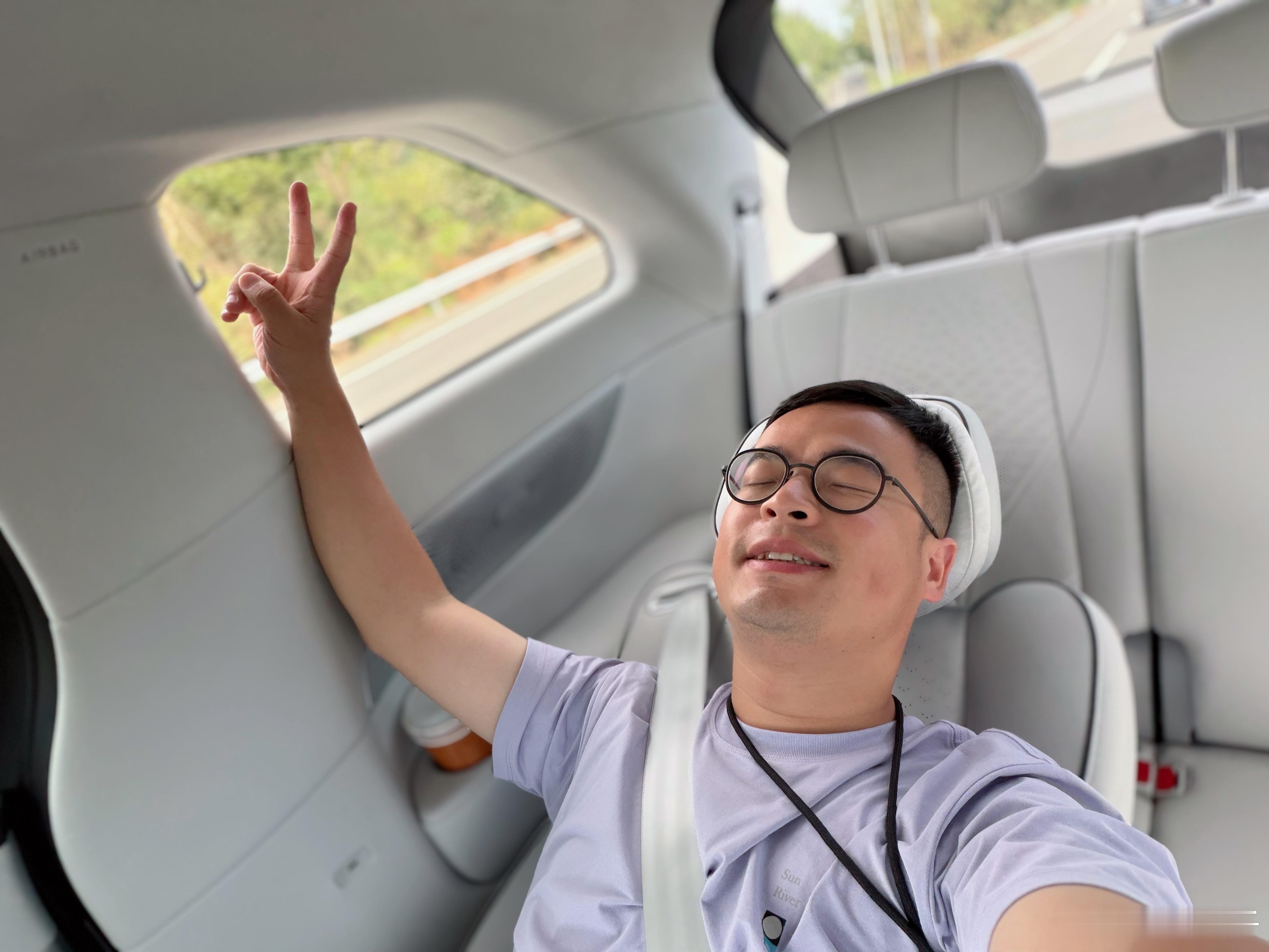 吃完了,在新X9的零重力座椅躺一会