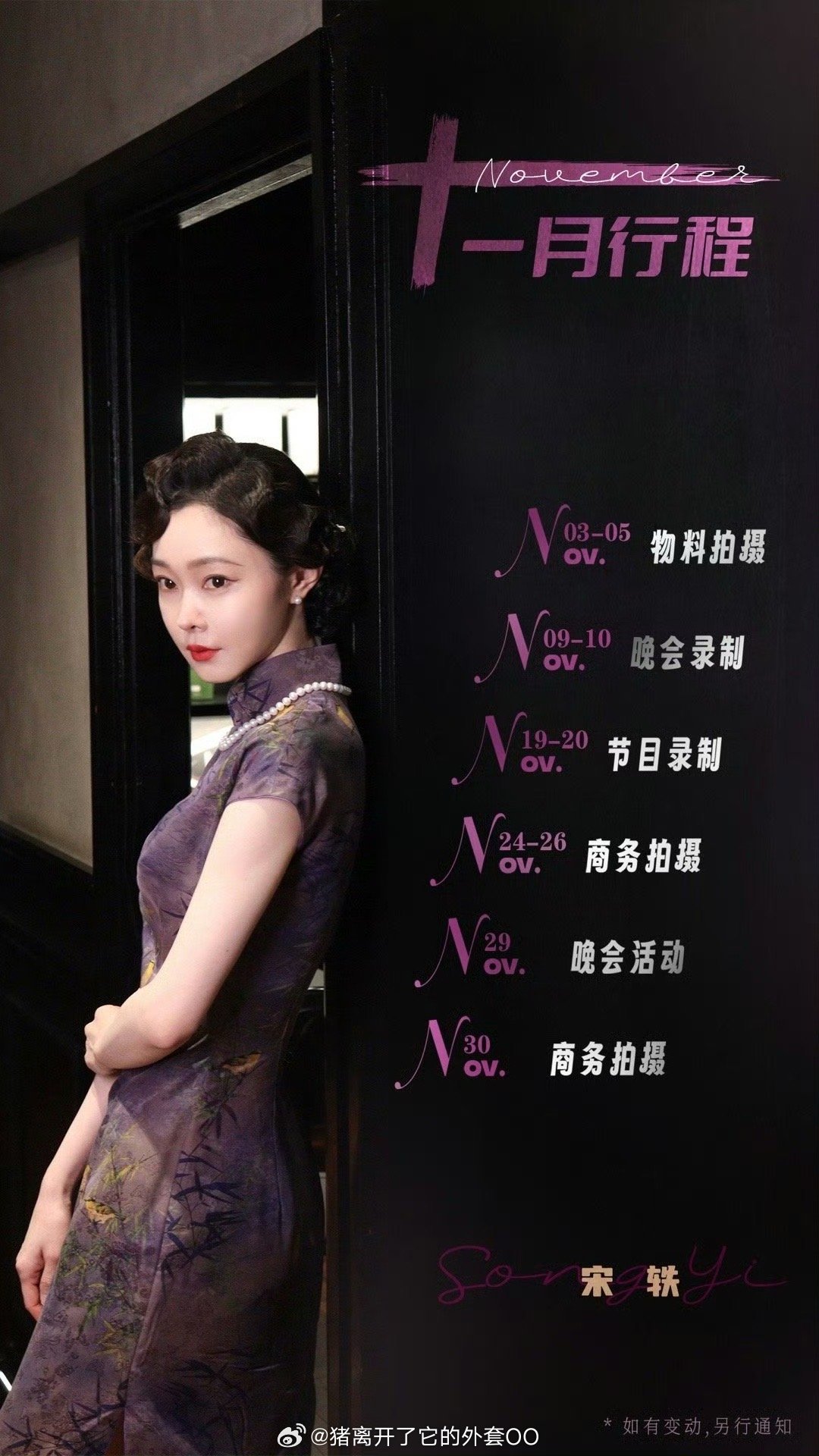 白鹿、吴谨言、李一桐、张婧仪、陈都灵、宋祖儿、李兰迪、宋轶、彭小苒、张予曦、邓恩熙,女明星十一月行程图送达!![羞嗒嗒]