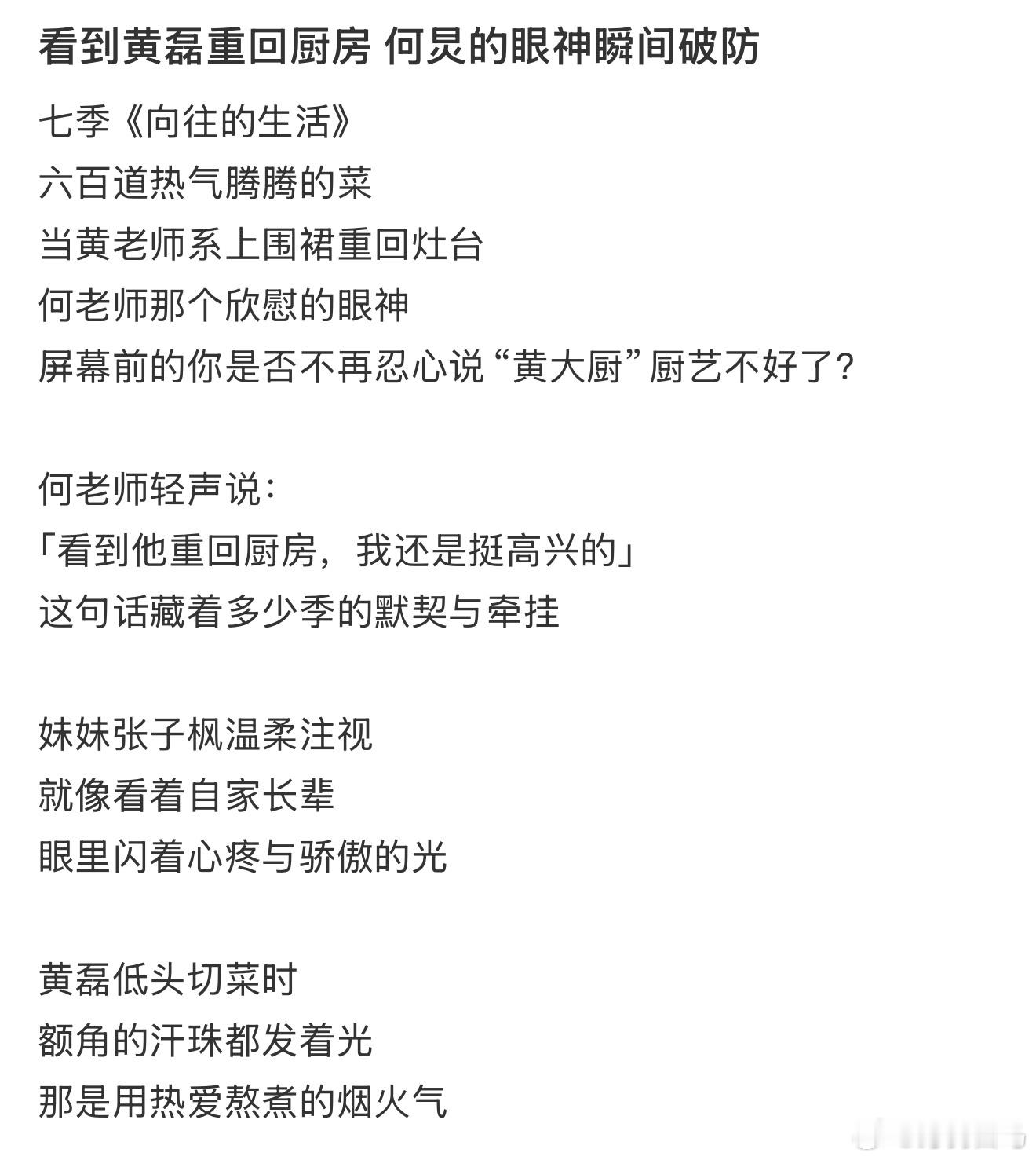 看到黄磊重回厨房 何炅的眼神瞬间。