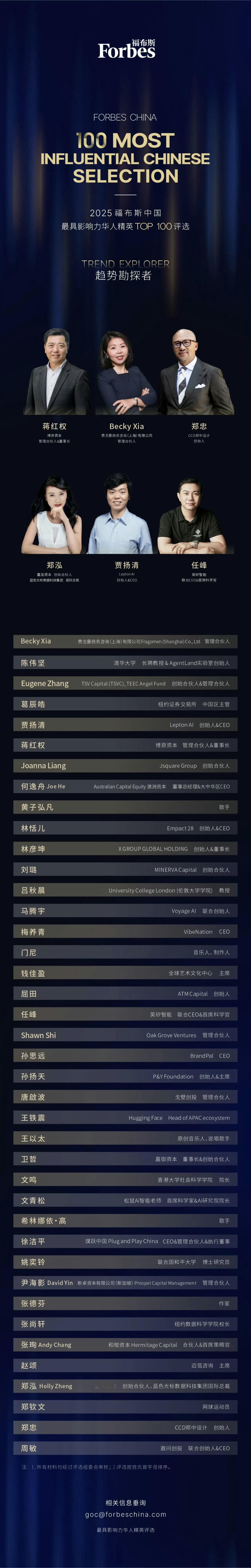 恭喜黄子弘凡作为「趋势勘探者」入选2025福布斯中国最具影响力华人精英TOP 100🎉证明了黄子弘凡在音乐领域的实力与国际影响力!