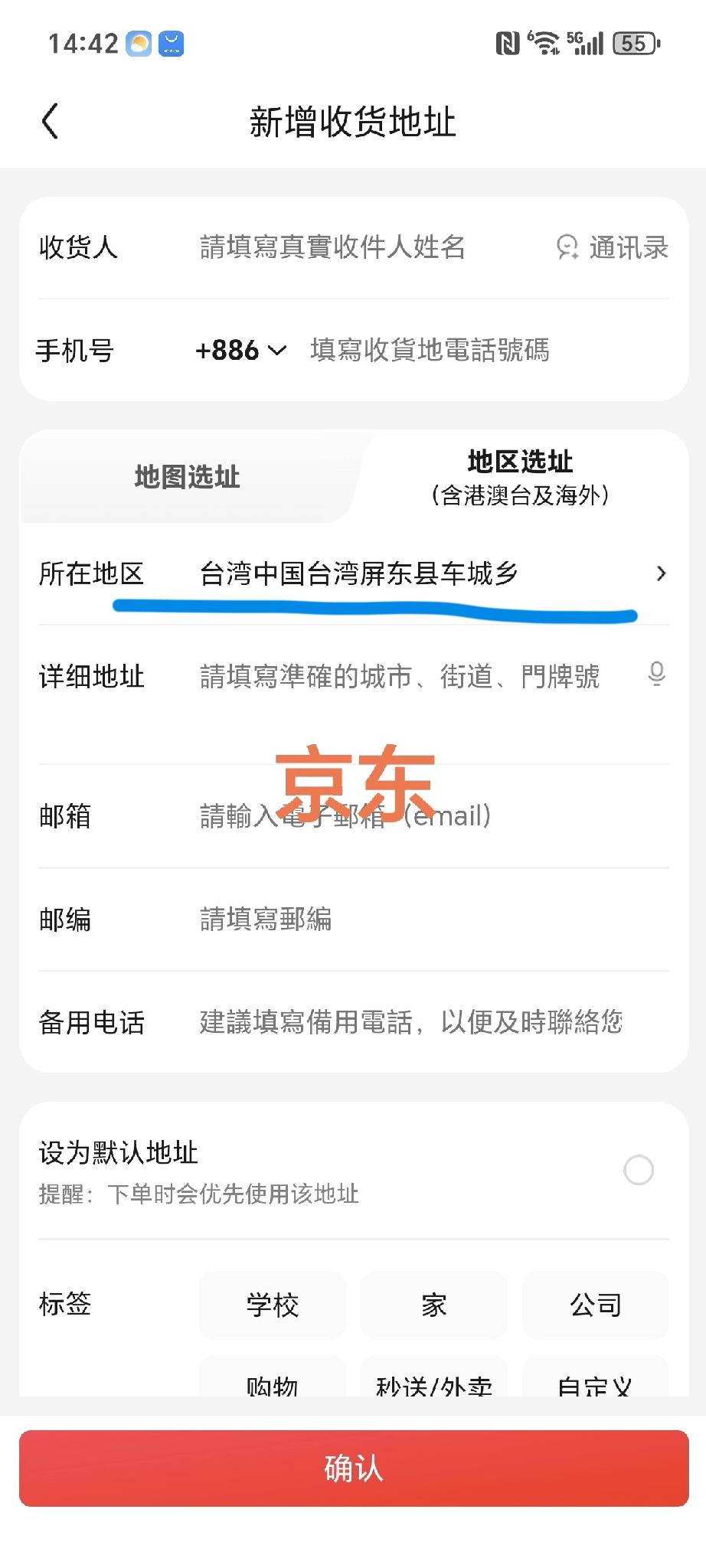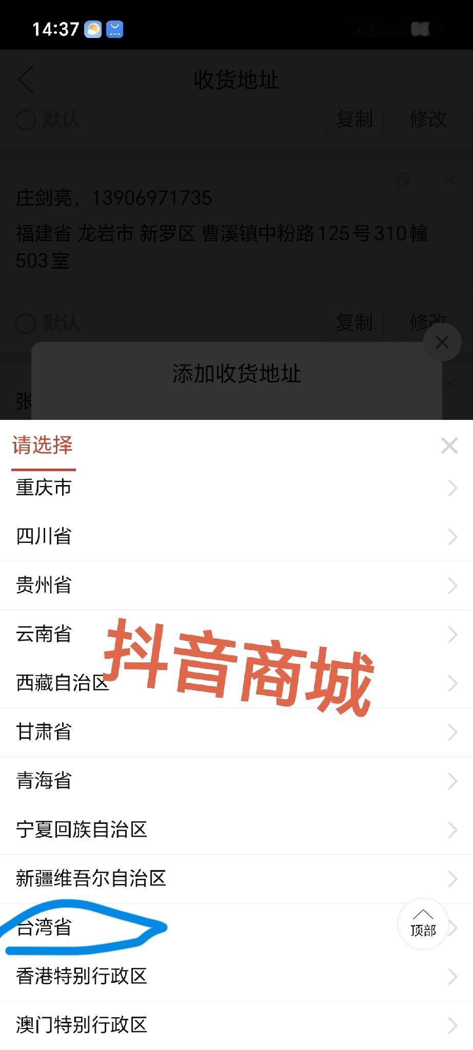 好消息!就在刚刚,突然发现台湾省已经被录入了我们国家的多家网购平台,我刚刚在抖音商城,京东和拼多多验证过了,收货地已经添加了台湾地区,目前淘宝暂时还没跟上。 这到底传递了一个什么信号呢,是不是意味着即将结束两岸 分 居关系,统一的步伐即将走完,此刻我是很激 动的。 想起了那首歌“冬季到台北来看雨”,或许2025年冬天不再是一句歌词了,会不会我们很快就能随意去爬阿里山,逛日月潭,上午在平潭县吃几个海蛎饼,下午就能去台湾吃卤肉饭,想想就好开心。 回来吧,同胞们!你们已经走得太久,该回家了。