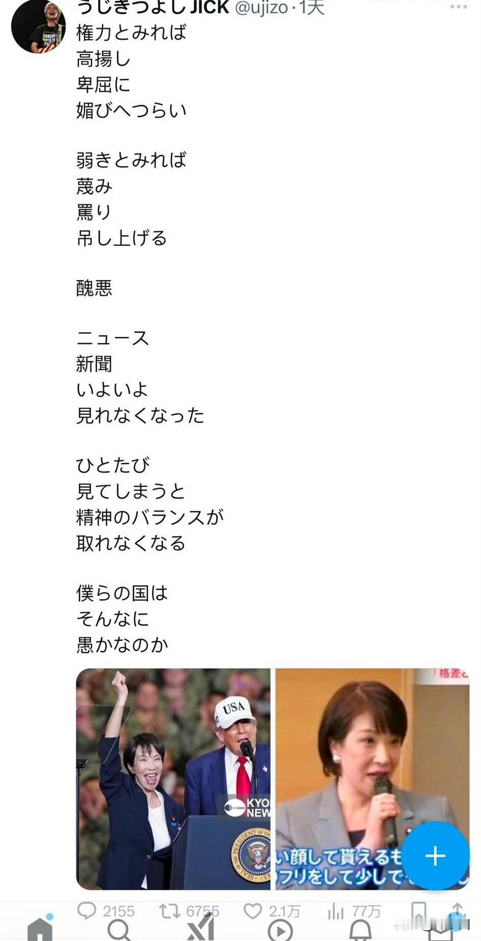 刚刚当上日本领导人的高市早苗,不到一周时间就迎来了他首次外交考验。与川普的此次会面对于高市早苗而言,是他认为美日再走好的表现。 然而,从无论是高市早苗承落对美加大进口天然气,还是对美塞钱5500亿美元而言,再到从头到尾,在川普面前都是唯唯诺诺的形象。 日本网友形象性的表示这哪里是美日再前进呀,这就是日本耻辱的外交[捂脸]