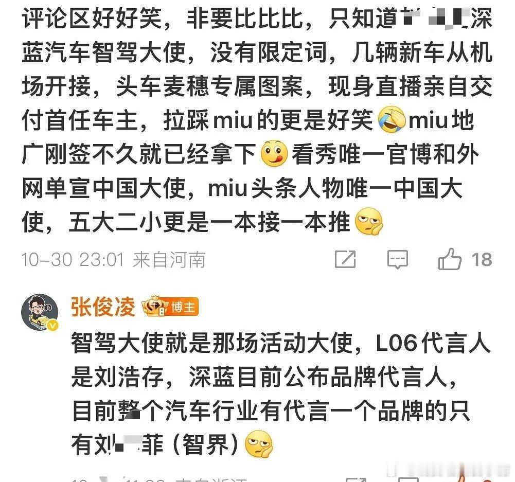 有一位自称业内人士的出来说明刘浩存赵今麦深蓝汽车的 title 情况[干饭人][干饭人]
