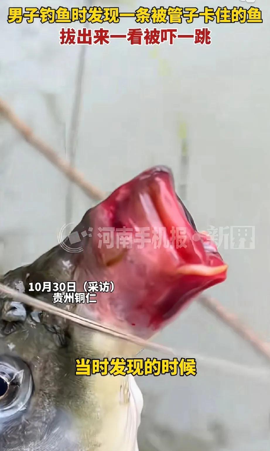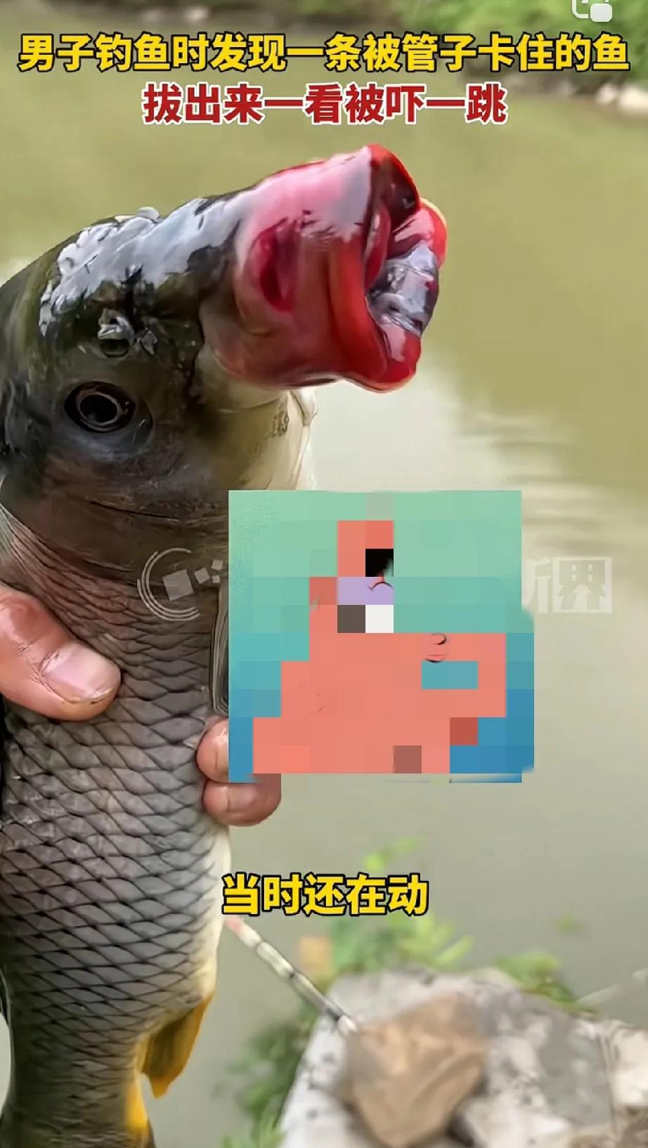 男子钓鱼时发现一条鱼,鱼靠近一条管子,光尾巴摆动,鱼却不游走,男子仔细观察后,确定这条鱼是被管子卡住了,于是男子使劲把鱼拔了出来,拔出来不看不知道!一看被吓一跳。 这条鱼的嘴因为被卡主的时间长,已经充血严重,成了香肠嘴! 我原来一直以为,鱼嘴是没弹性的,这么看起来,鱼嘴也有弹性啊!太不可思议了!