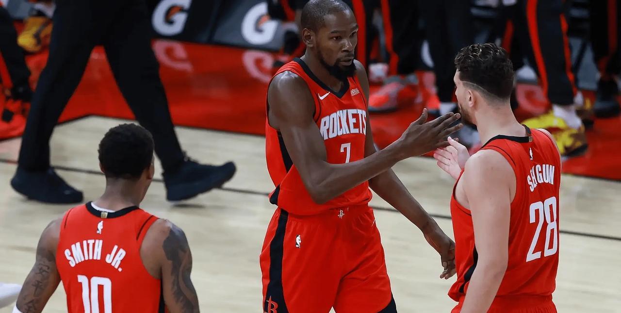 不吹不黑!杜兰特给火箭带来的三个实实在在的改变: 第一,缺少组织后卫,依然联盟第一的进攻效率。阿杜在进攻这一块,你从来都不用质疑! 第二,相比较于搭档杰伦格林,联手杜兰特,申京在进攻端所要面对的压力明显降低。 第三,小史密斯是最大的受益者。 1、更好的出手空间。 2、榜样的力量:两人一起训练,两人拥有相似的身型,杜兰特无疑将在小贾成长过程中扮演导师角色。