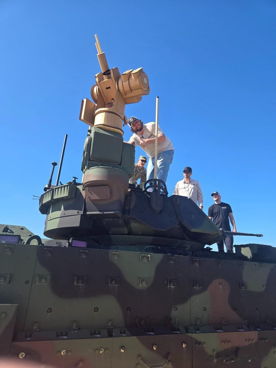 🇺🇸这是美国艾伦控制系统公司(Allen Control Systems)研发的“牛蛙”(Bullfrog)反无人机系统的模型。 该公司声称,该系统能够保护坦克和步兵战车免受小型自杀式无人机的威胁,从而使重型装甲车辆能够全面重返战场。 在已发布的照片中,该公司工程师正在艾布拉姆斯坦克和布雷德利步兵战车上测试该系统的模型。