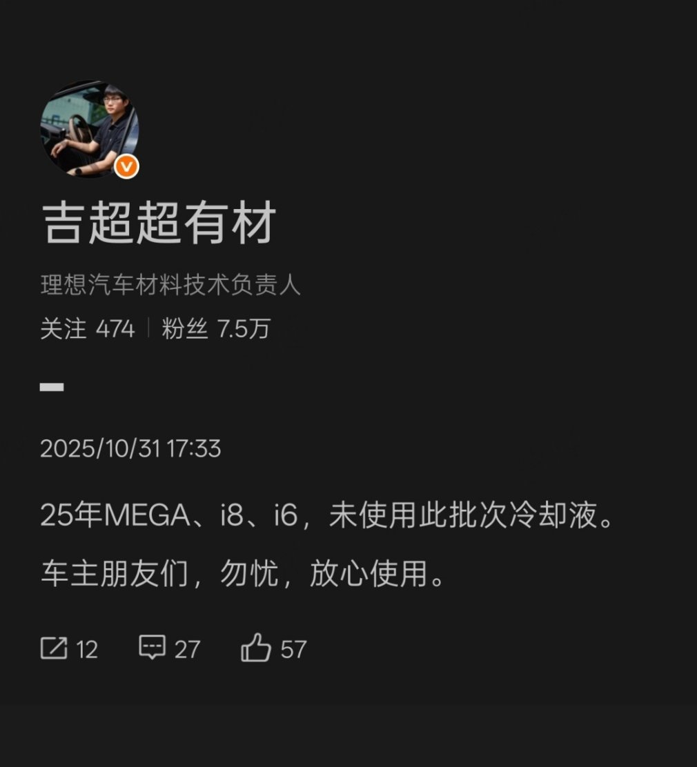 25年MEGA、i8、i6都没有使用此批次冷却液!