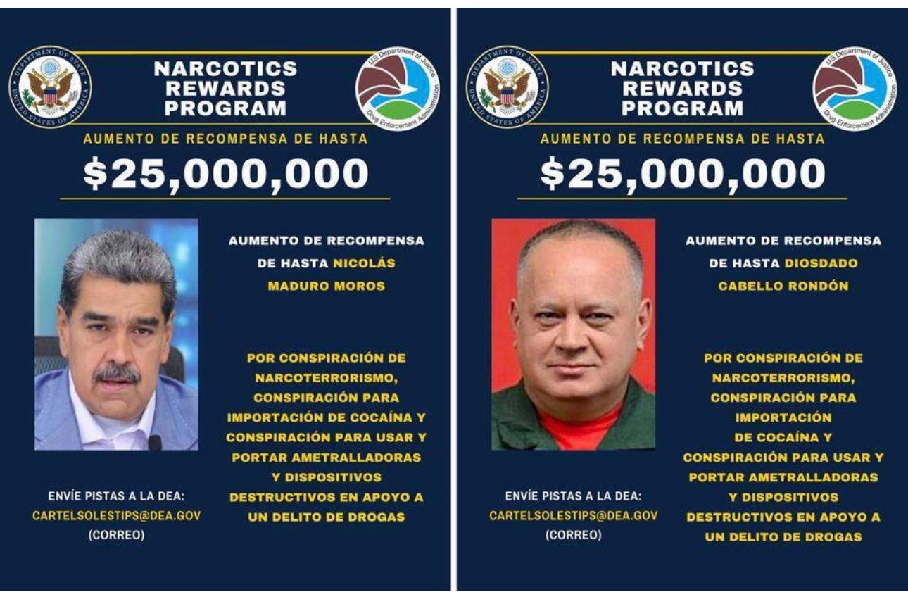 华盛顿方面已将悬赏逮捕马杜罗的信息奖金翻倍至5000万美元,这是美国历史上开出的最高悬赏金额。