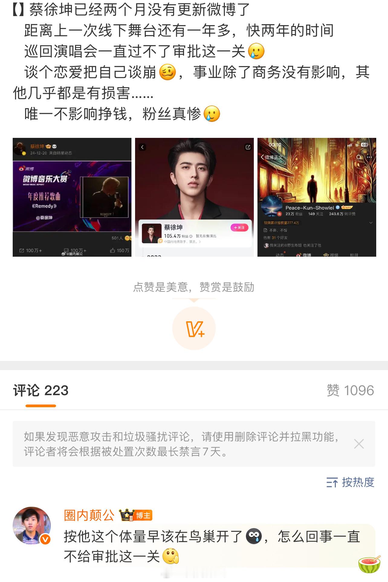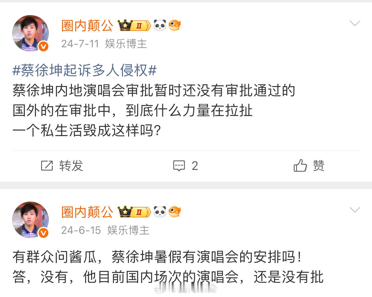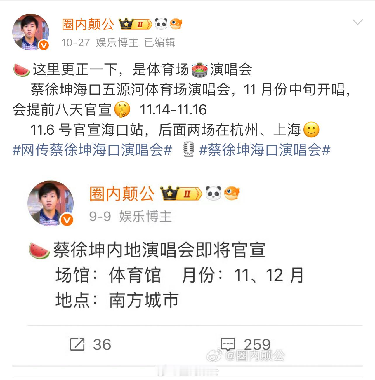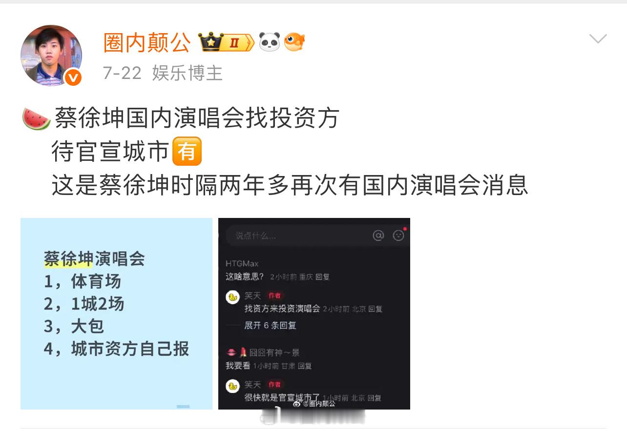 从去年开始我就一直发微博有提到蔡徐坤演唱会审批的事情,主要是后台也有很多 ikun 提问……