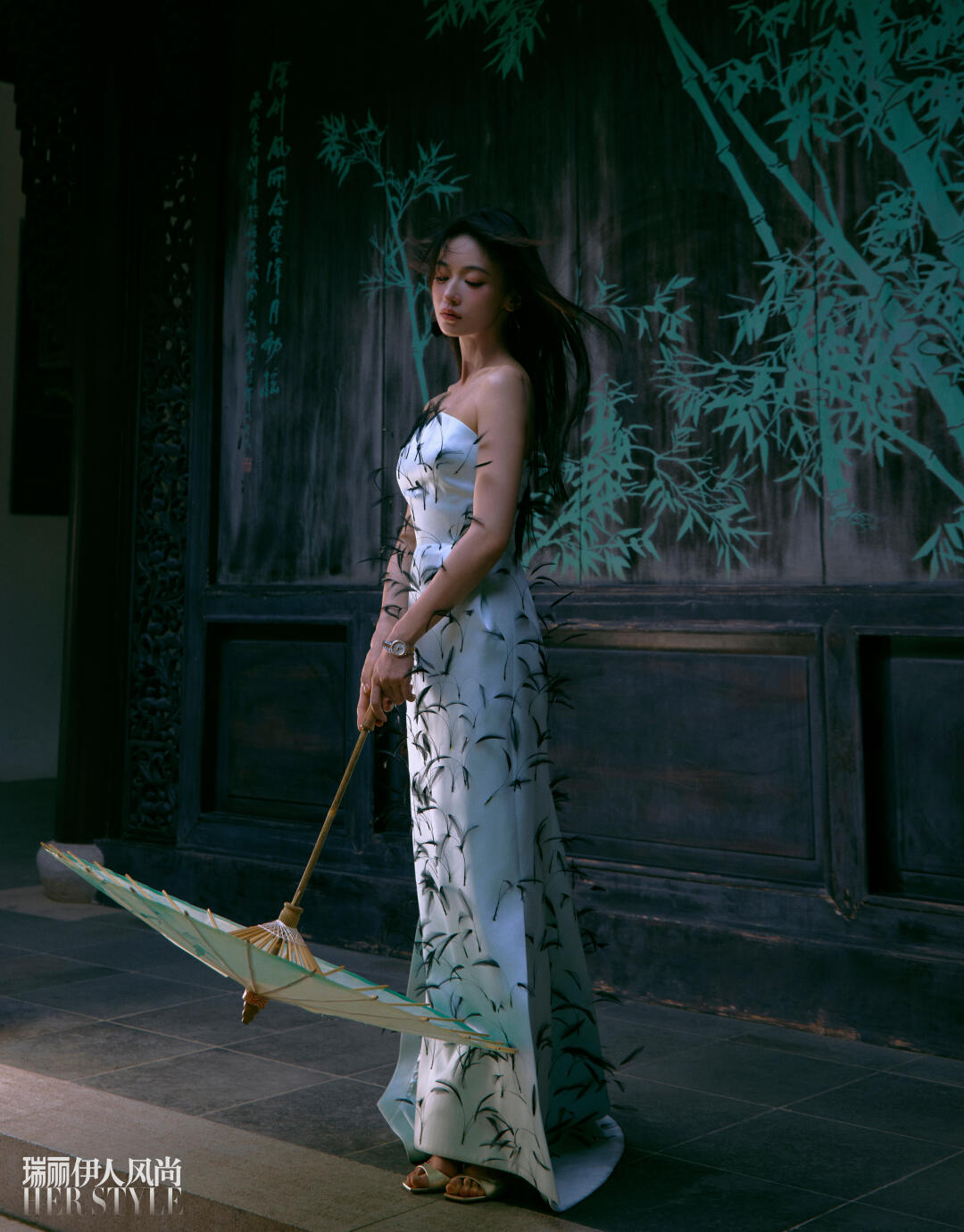 将古典园林穿成身上流动的风景, 荷塘碧波间, 雨丝轻落, 时光仿佛在此刻凝结。 与吴谨言一起走进这帧氤氲着东方诗意的水墨长卷, 中式夏日浪漫,此刻绽放。 #时尚管理留学 #时尚管理作品集 #时尚管理申请 #时尚 #时尚管理 #穿搭 #时尚穿搭 #吴谨言 #时尚管理专业 #时尚管理论文