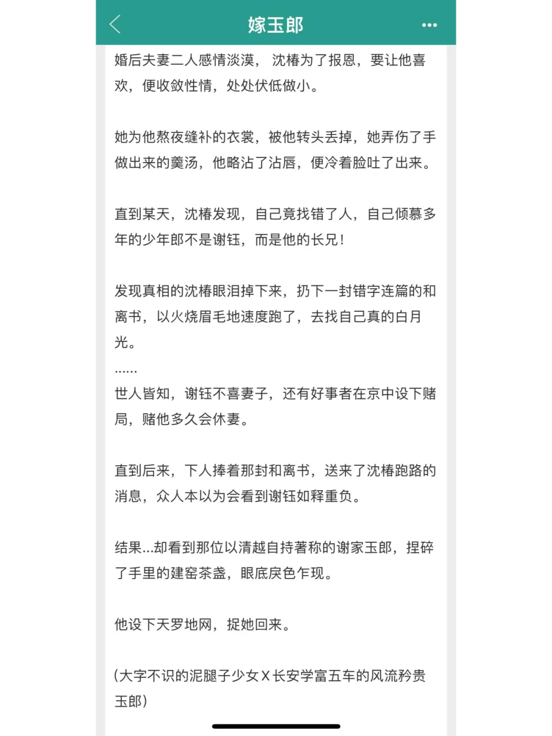 今日推荐:《嫁玉郎》,作者:七杯酒 主角:沈椿,谢钰 *看似粗俗但通透爽朗 x 前期矜贵自傲后期打脸真相世家子 *大字不识的泥腿子少女 x 学富五车风流矜贵的长安玉郎 *古言/宫廷侯爵/豪门世家/先婚后爱/破镜重圆/追妻