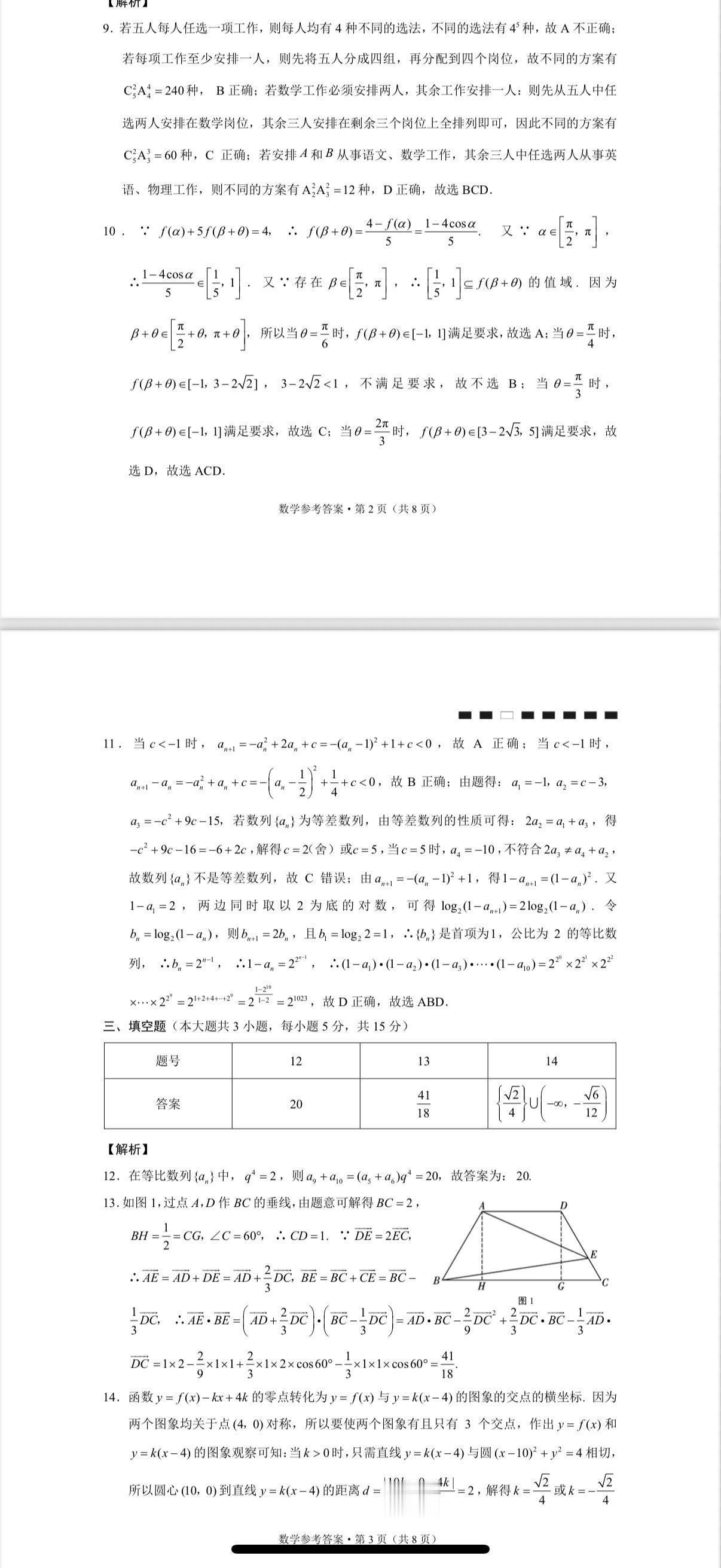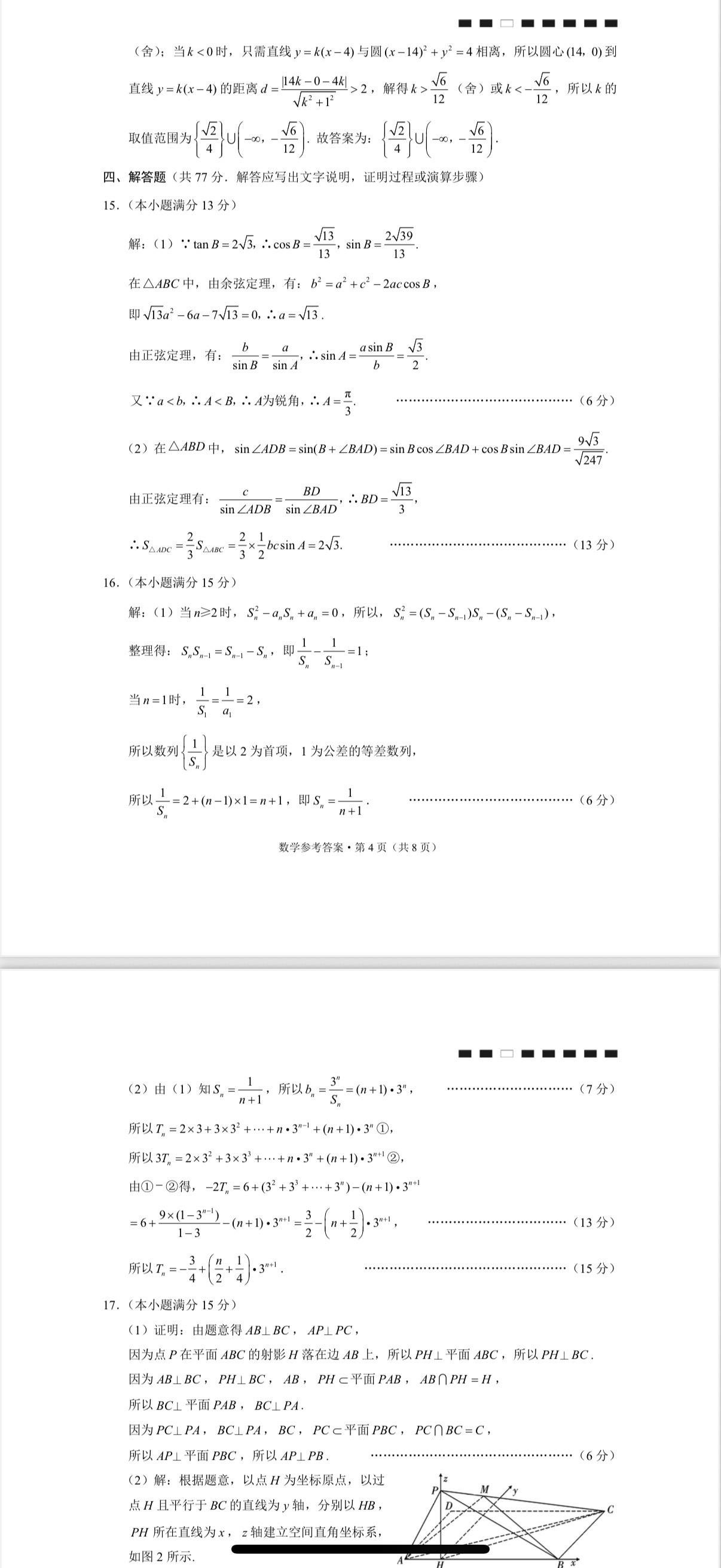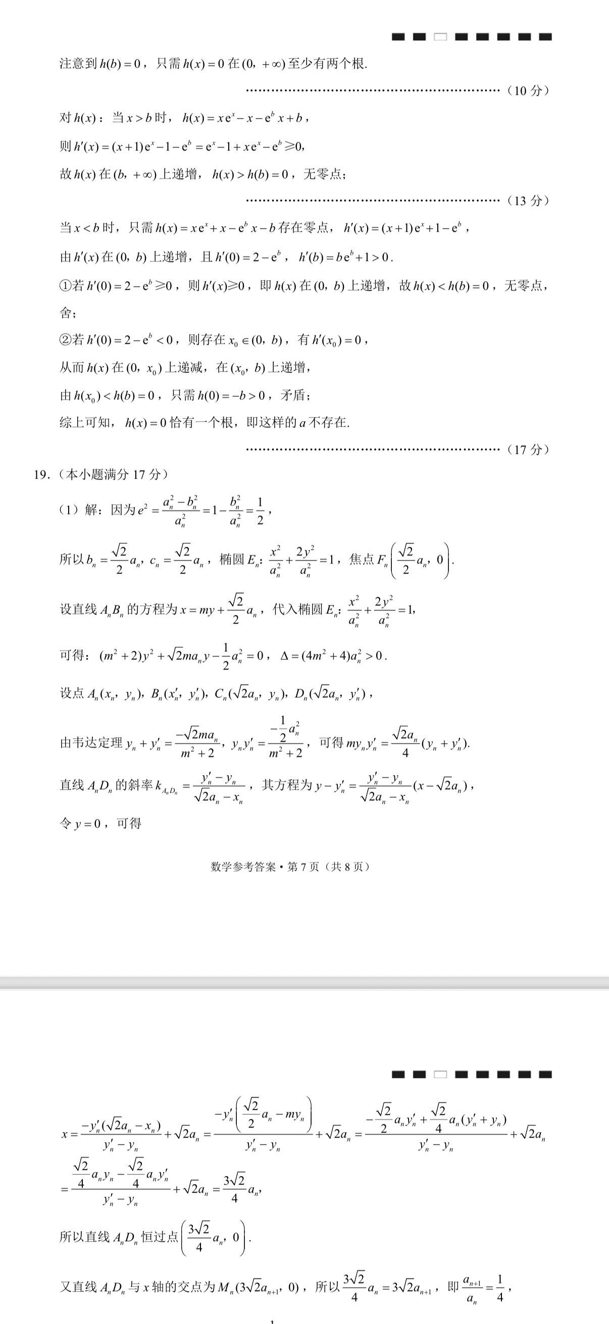 下午结束的安徽省江南十校高二5月联考数学试题及答案,第8题切线放缩、第...