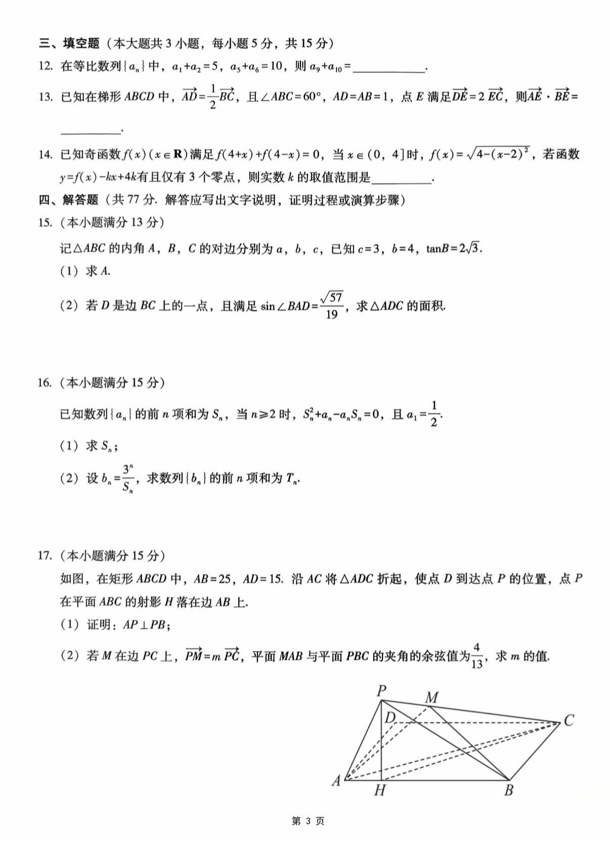 合肥一中2025届高三最后一卷数学试题及答案,变态难是合肥一中最后一卷...