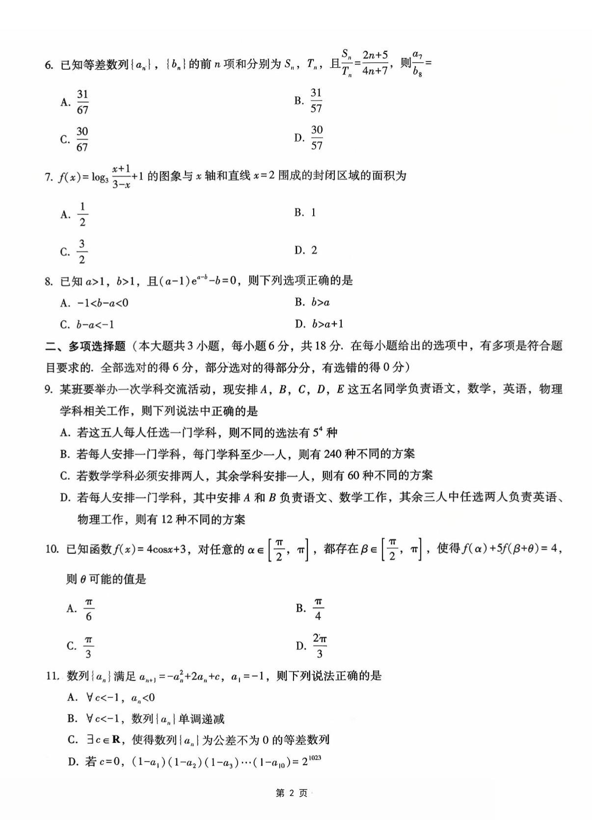 济南市2025届高三摸底考试数学试题及答案,难度适中,比安徽那两套试卷质量要好!