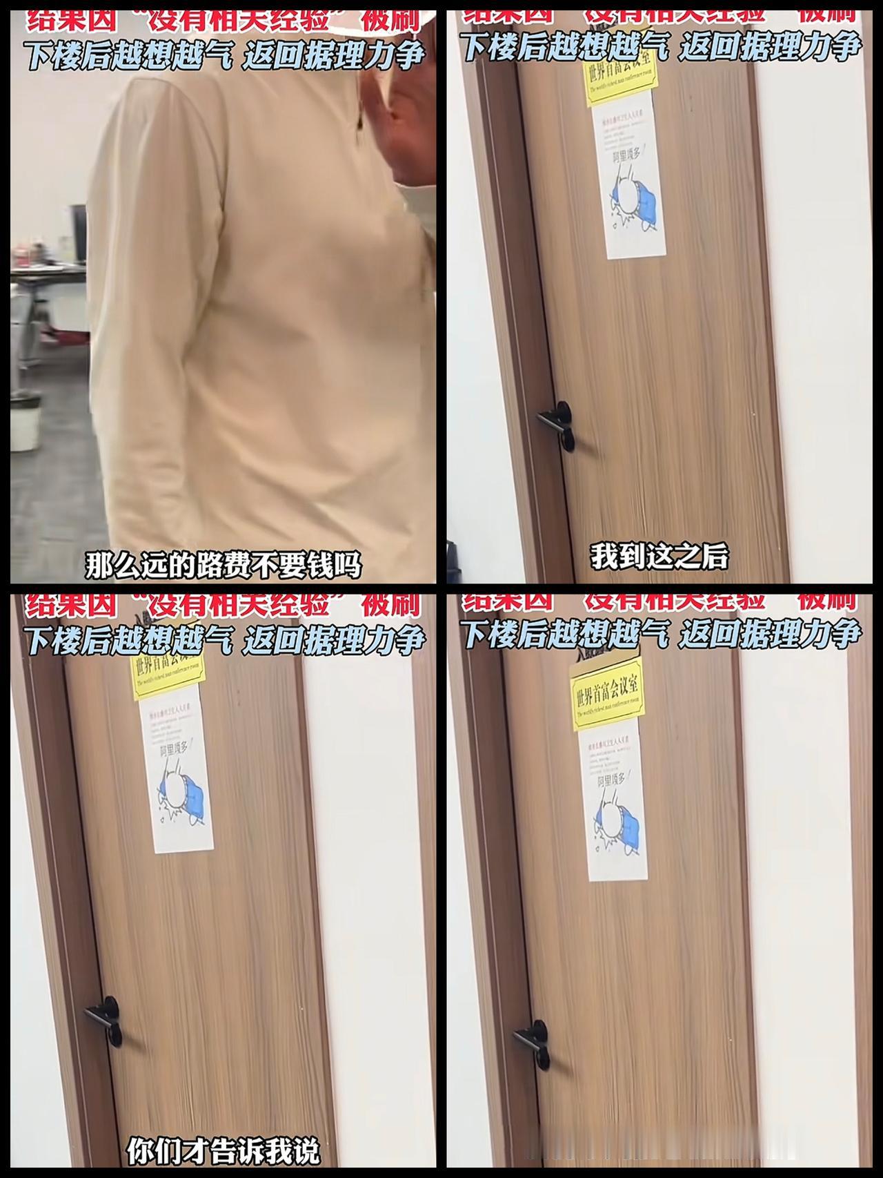 杭州一女子九月份面试了一家公司,已经提前交了简历,结果因为没有相关经验被拒。女子下楼后越想越气,觉得不能受这个窝囊气,就又跑到楼上对公司开怼:简历提前发了,没有看吗?已经提前说了自己没有相关经验,为什么还让我来。 大部分人遇到这种情况,可能扭头就走了。这女生做了大部分人不敢做的事情,很厉害。 这种事确实难避免,有些公司可能已经不招人了,但是HR为了业绩,仍然要拉人头,面试足够的人数。不过看来这个HR也是没经验呀,有经验的应该会说,回去等通知吧[笑哭]。HR 面试 工作