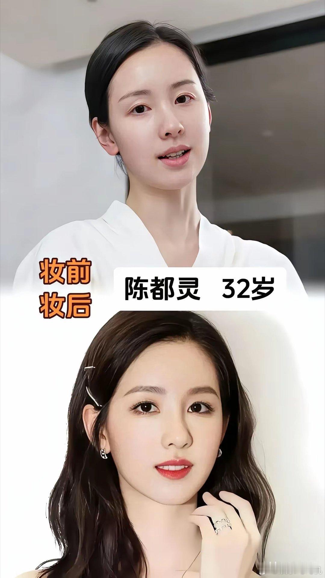 这几个女明星的底子真好。妆前妆后差别不大,依然是大美人一个。