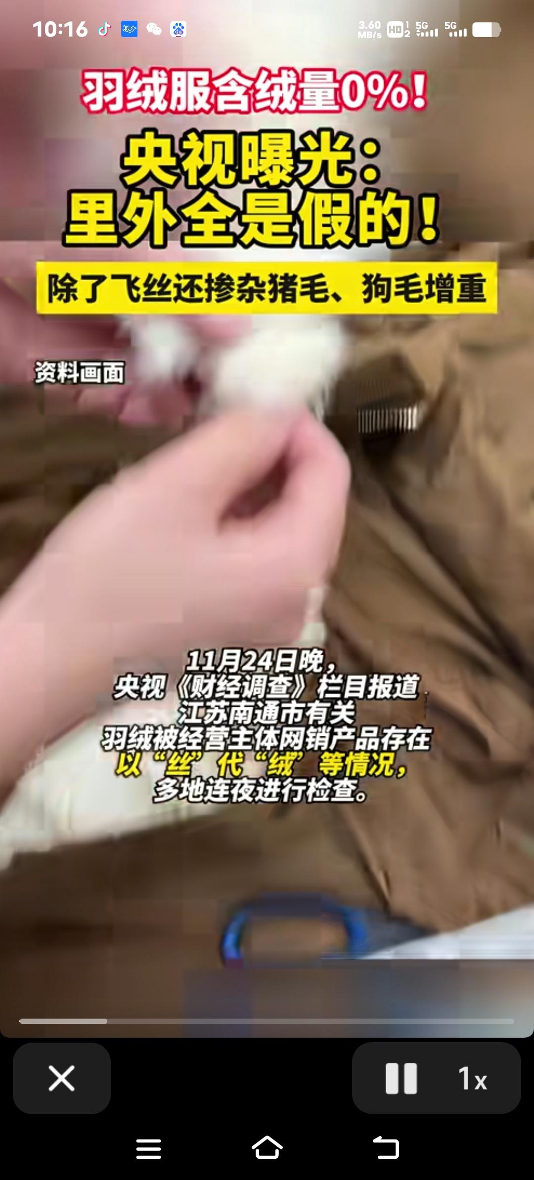 羽绒价540000元一吨!百元羽绒服热销,暗访揭露用羽毛下脚料 三四百的羽绒服还觉得贵?那些百元左右的“羽绒服”说不定里面压根就没有真羽绒!有些不良厂家会用绒丝之类的材料以次充好,故意把含量标高,实际保暖效果可能连十分之一都不到。可别被便宜价格忽悠了,保暖重要,品质更不能忽视! 百元羽绒服到底是真划算还是大坑?有人拆开一看直接傻眼:里面的填充物其实是羽丝和绒丝混在一起的,成本连真羽绒的十分之一都不到,摸起来软塌塌的,保暖效果差很多! 最近天越来越冷,买羽绒服的人越来越多。但市面上一下子冒出来好多百元价位的所谓“羽绒服”,不少消费者一看价格就觉得“太划算了”。但实际情况怎么样?记者去了解了一圈,发现这些低价货其实问题不少。 有生产厂家透露,一件合格的羽绒服,光羽绒成本就要80块以上,再加上面料、人工这些,卖到300块以上才能保本。而那些百元左右的,用的基本都是羽毛废料,保暖性能完全没法比。更气人的是,有些商家故意在产品上写“羽绒棉”这种模糊叫法,跟消费者玩文字游戏,很多人一不留神就被骗了。 业内懂行的人提醒大家,买羽绒服一定要看吊牌上写的“含绒量”,尽量挑那些口碑好的大品牌。毕竟冬天保暖是大事,可不能因为贪便宜,让劣质产品钻了空子。 你买羽绒服的时候最在意什么?有没有遇到过参数虚标的情况?来评论区聊聊你的经验,帮大家一起避坑吧!