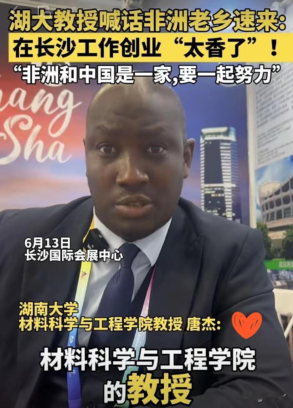 网上到处在传这个 中国的博士从讲师到教授,最少需要6—7年,为什么非洲博士,一年教授 他有啥独特的科研? 湖南大学材料科学与工程学院尼日利亚籍教授唐杰。 这位唐杰教授可不简单。他在电催化领域做出了实实在在的成果,发表的论文入选了国际权威期刊的热点论文和高被引论文。这意味着他的研究既前沿又实用,被全球同行广泛认可。 他研发的一种新型纳米材料,在海水里也能高效制取氢气。这项突破太重要了,毕竟地球上海水最多,直接利用海水制氢将为清洁能源开发打开新大门。 非洲科学家正在国际舞台崭露头角。比如尼日利亚的巴巴洛拉教授,发表过400多篇论文,培养了几十名博士,在全球高被引学者榜单上名列前茅。她的成就证明科研实力从来不看肤色。 国内高校的职称评审确实比较严格。比如有的大学规定,博士要当够两年讲师才能评副教授,有的甚至要求五年。这种制度保证了整体水平,但也显得不够灵活。 国际上更看重实际能力。有位从美国回来的青年学者,因为在《自然》杂志发表了重要论文,直接被国内顶尖高校聘为教授。这说明真正的人才到哪里都会受到重视。 评价学者,关键要看他解决了什么实际问题。唐杰教授的研究能让制氢成本更低,这对发展新能源至关重要。比起熬年头,这样的创新更值得鼓励。 各位读者你们怎么看?欢迎在评论区讨论。