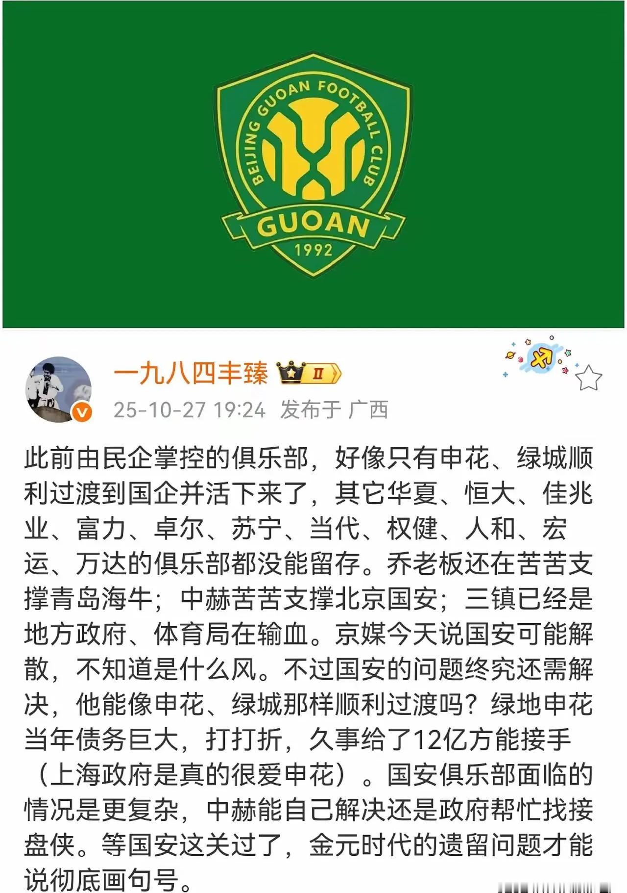 久事入驻申花三年,海港连夺四冠! 上海申花对阵深圳新鹏城的比赛中,很多现场的申花球迷,表达了对久事的不满,那么,这些球迷怎么不想想,没有久事,申花还会活下来吗?由民企过渡到国企,的除了浙江,也就申花了。看看那些没得球队,看看有些球队的生存现状,应该满足才行。 久事接手申花,先帮忙填平了12个亿的债务,这是上海政府对申花最大的厚爱了。 当然,申花有自己的问题,最大的问题就是外援选择上,外援引进上差一些,再有,斯卢茨基的技战术实际一般,靠身体,靠拼搏精神。 对比上海海港,各方面差距还是有的,所以成绩是最好的反馈,千万别说蓉城一些极端球迷,来年再战就是!三十多年了,还差一两年吗?上海申花队