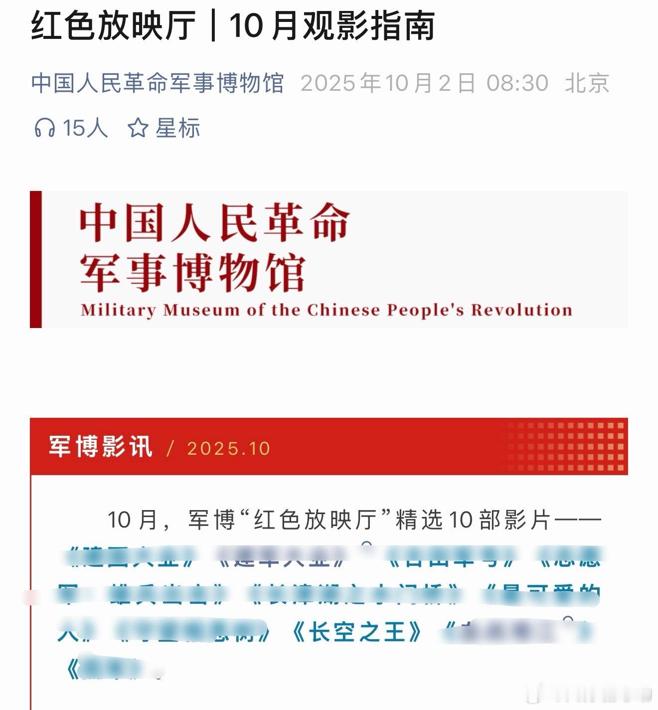 10月也被列入“红色放映厅”精选影片放映 ​​​