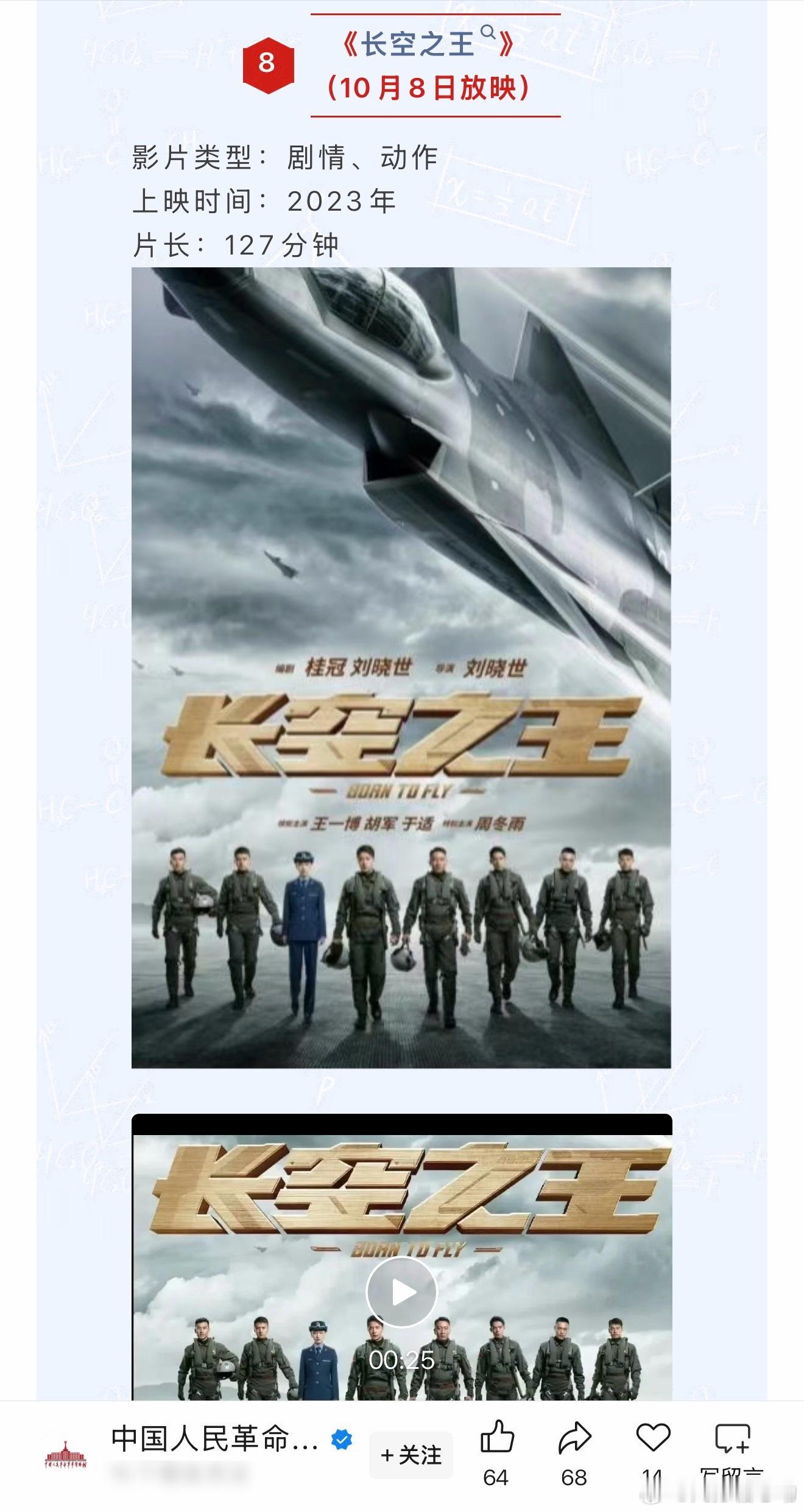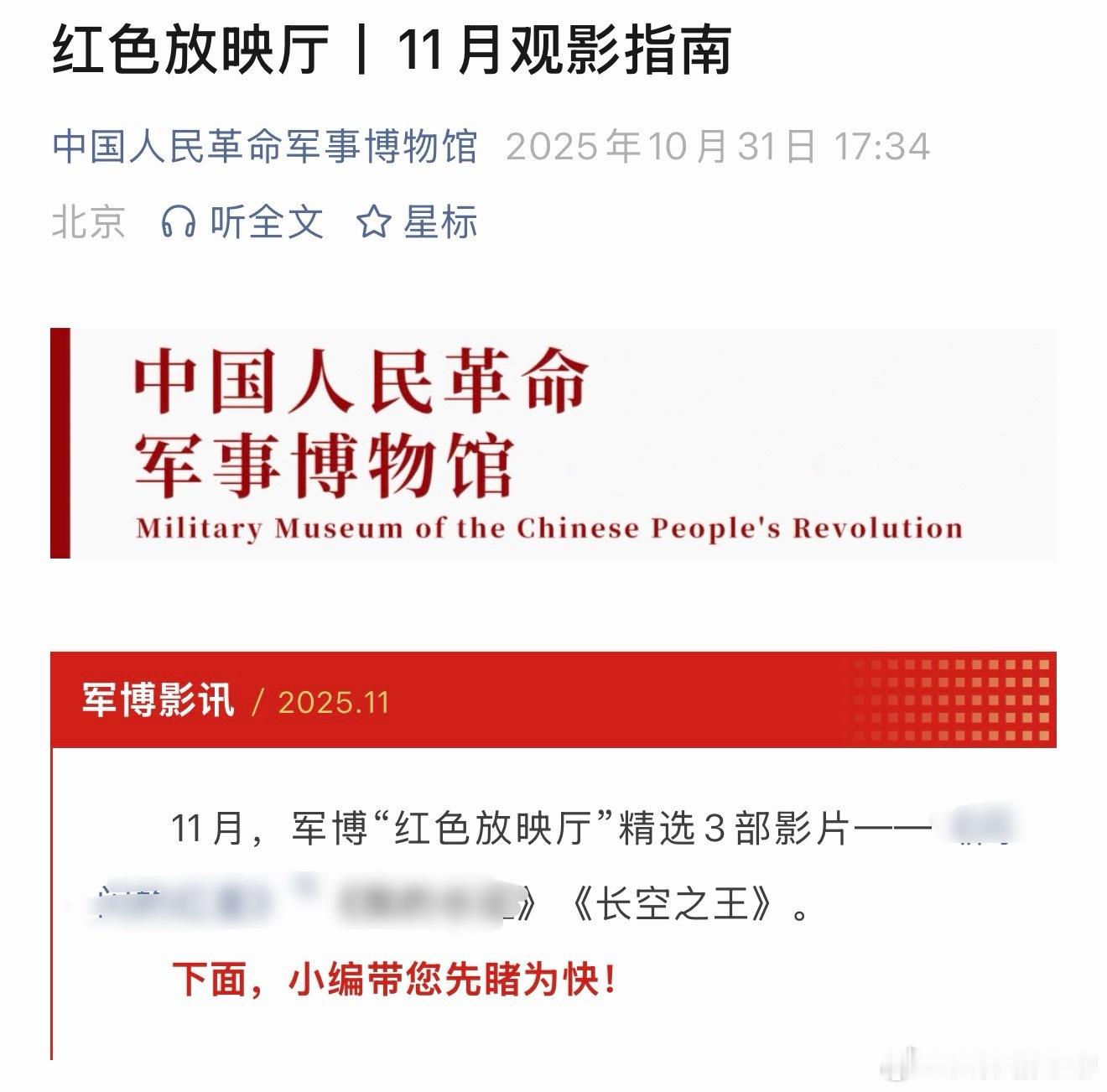 王一博[超话]军事博物馆红色放映厅11月即将放映王一博长空之王!10月也被列