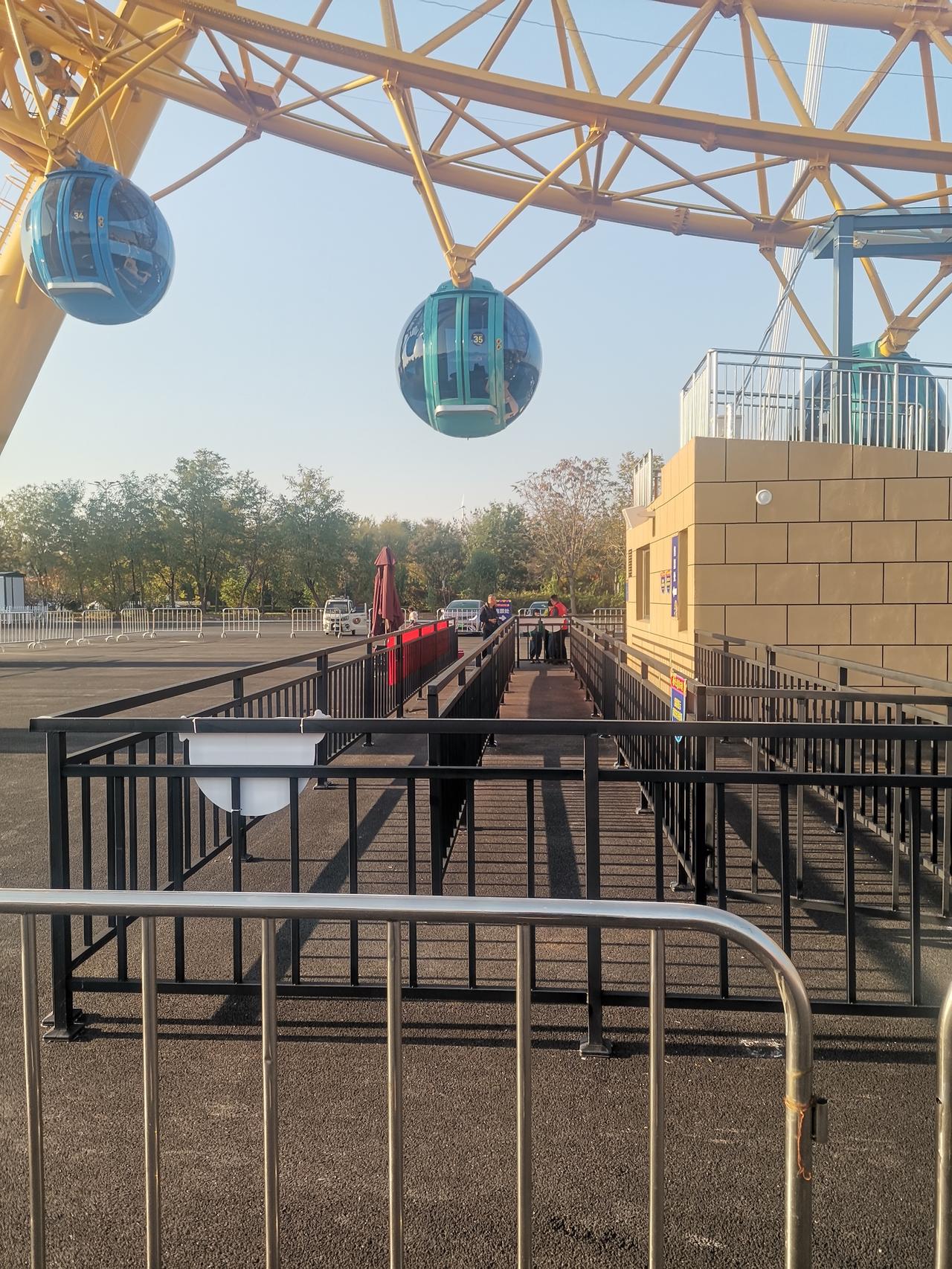 号称德州之星的摩天轮,由于国庆长假开业的时候恰逢秋雨连绵,一直没有出现预想的火爆场面。但在阳光明媚的周末,还是有很多人前来乘坐体验。 摩天轮的营业,也带动了很多儿童游玩项目前来。碰碰车、充气堡、蹦蹦床等,吸引了很多孩子来玩。 铜锣湾小镇出现了前所未有的热闹场面!