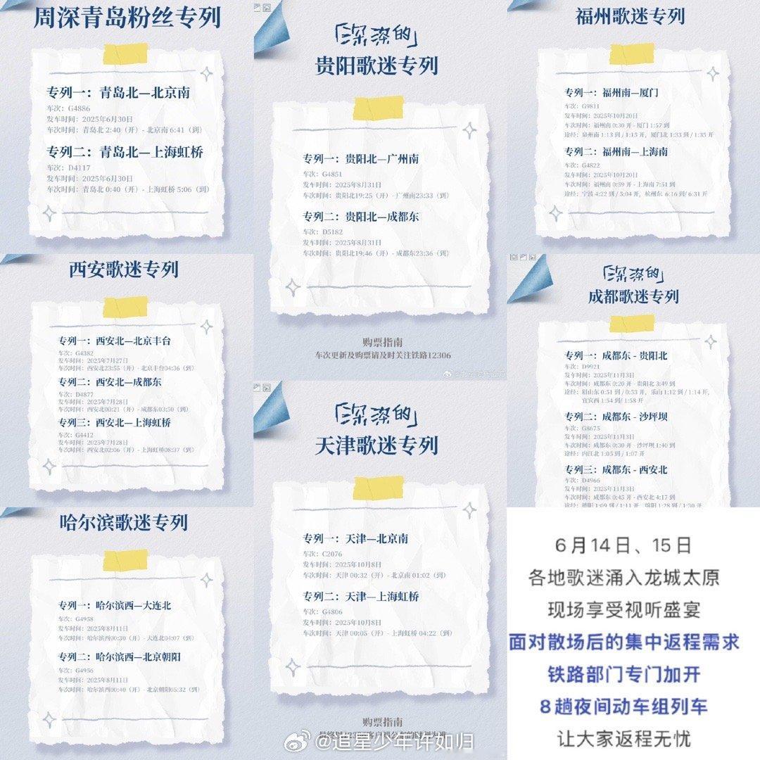 周深首次提及8城歌迷专列周深在福州vlog中说:“周深好,团队好,歌迷也好——这才是真正的双向奔赴。”目前已有8座城市开通“歌迷专列”,让每一次奔赴都充满温度与安心。