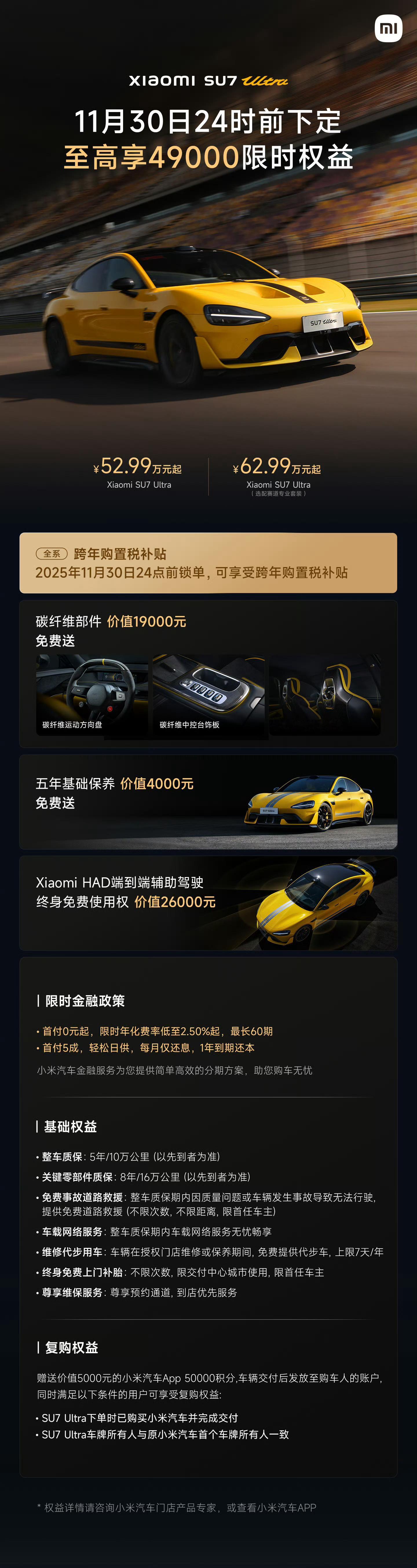小米汽车11月购车权益来了,11月底前锁单,全系车型可享受跨年购置税补贴。