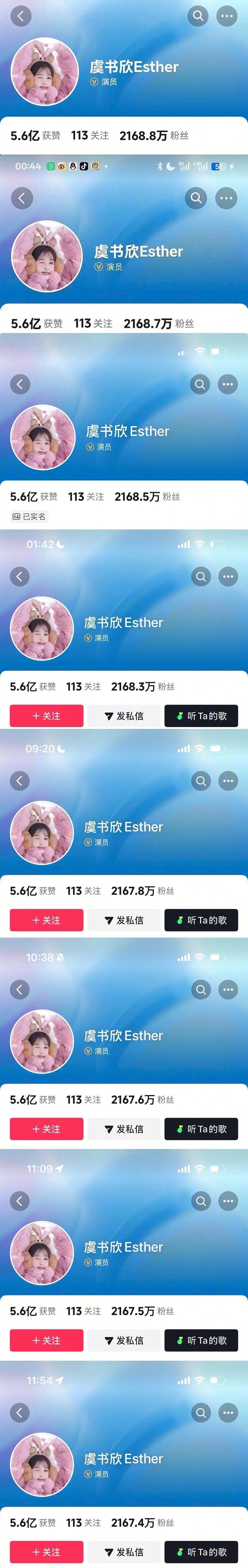 虞书欣全平台掉粉超250w,这都是活粉吧!