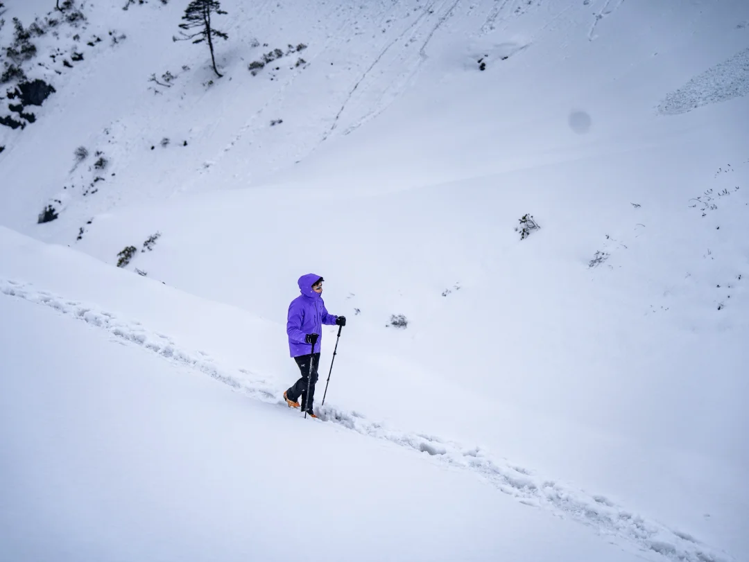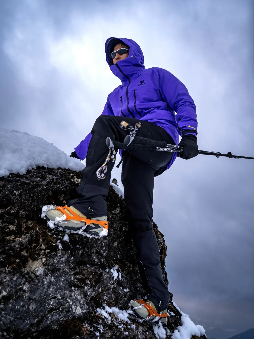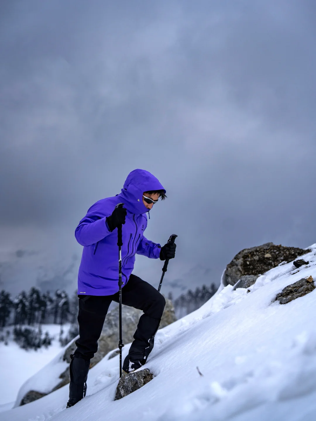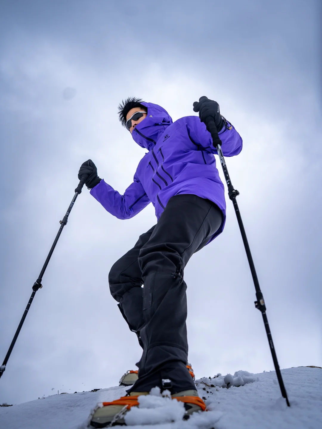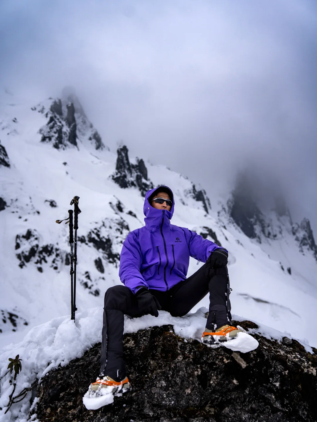 ✅MONT X-PRO硬壳冲锋衣:4月底的孔雀山还被雪覆盖着,GORE-TEX PRO的面料正好能帮我将孔雀山的雪隔绝在外;轻量化的设计,让我在登山时也毫无束缚,带上三维立体风帽足以应对山顶狂风;而且旷凝紫的颜色在户外又很出片,可以说兼顾功能性与时尚性,是不可或缺的单品!