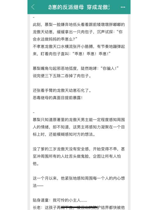 故事讲的是女主意外穿越到一本书里,成为龙傲天男主的反派继母之后,面对现在还是3岁的小煤气罐龙傲天,以及表面冷酷实际爱玩手办的反差萌大反派男主,女主决定自救。