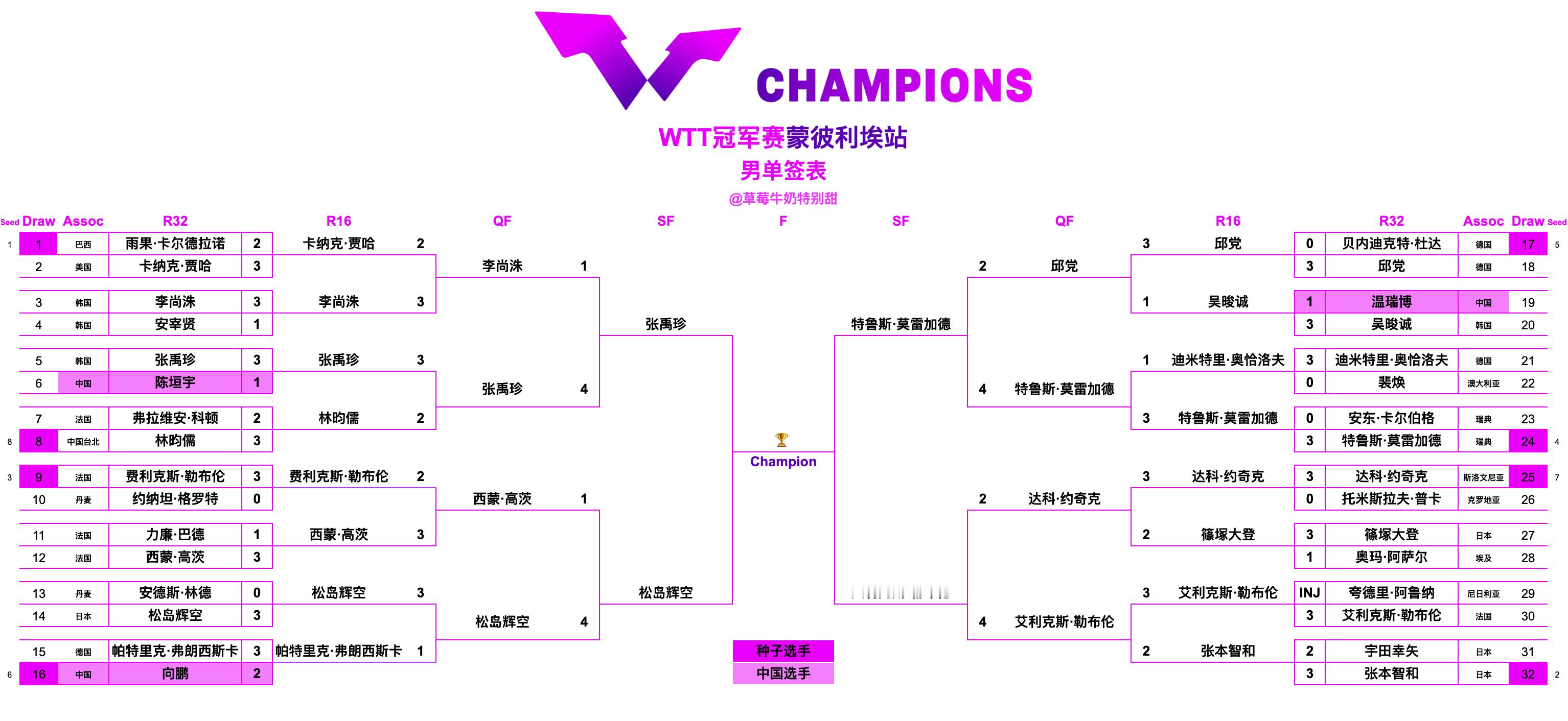 WTT冠军赛蒙彼利埃站丨男单四强张禹珍🇰🇷VS松岛辉空🇯🇵特鲁斯·莫雷加