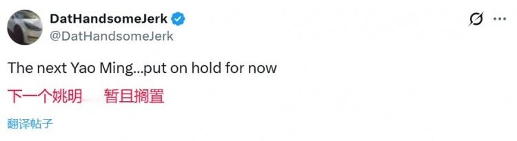 下一个姚明暂且搁置,非常优秀的孩子,但还没有准备好进入NBA。