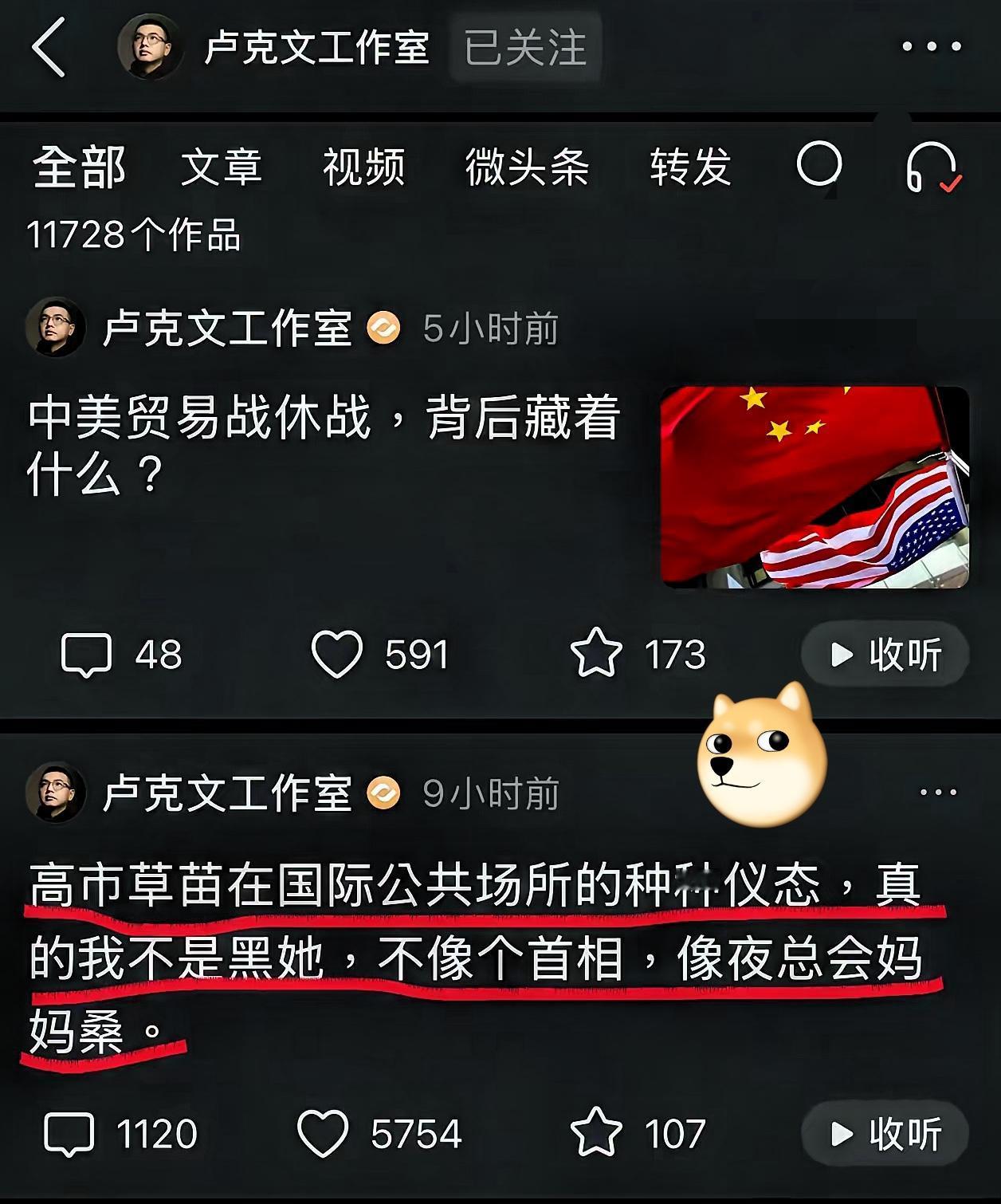 昨日卢克文的一句“妈妈桑”惹了大事儿! 卢克文在社交网站发文称“高市早苗不像一国首相,像夜总会的妈妈桑”,直接炸出一群跳脚骂人的,可说实话,这骂得真不冤! APEC期间中方给足情面会面,话说得明明白白,既有合作诚意更有底线警示。结果人家转头就私会台当局人员,还连着两天在社交平台高调发文炒作,连称呼都故意踩红线。 今年可是台湾光复80周年,日本在台湾问题上的历史账还没清,她倒好,拿中日关系政治基础当筹码。所谓“妈妈桑”,骂的不就是这种两面三刀、把信用当摆设的做派? 比起话术,更该盯紧她的行动。你觉得光靠骂能戳醒这种投机政客吗?
