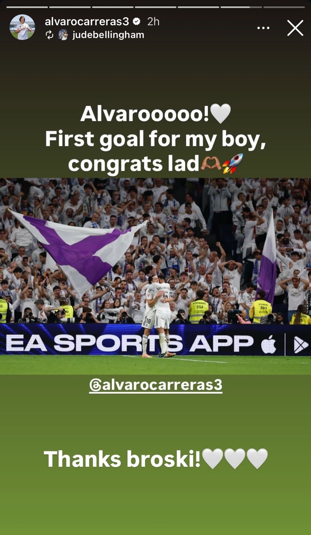 贝林:阿尔瓦罗的首球!🤍恭喜我的宝!🙌🚀