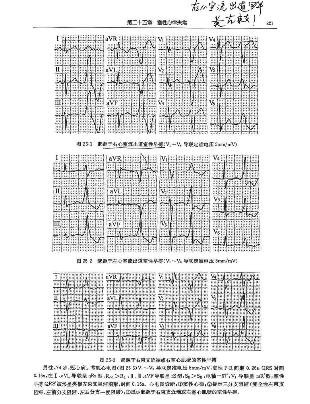 下壁导联(II、III、aVF)定上下:若主波向上,则来自流出道。若主波向下,则来自心尖部。