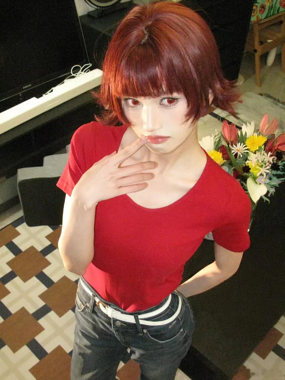红色短发好古灵精怪啊沈羽洁