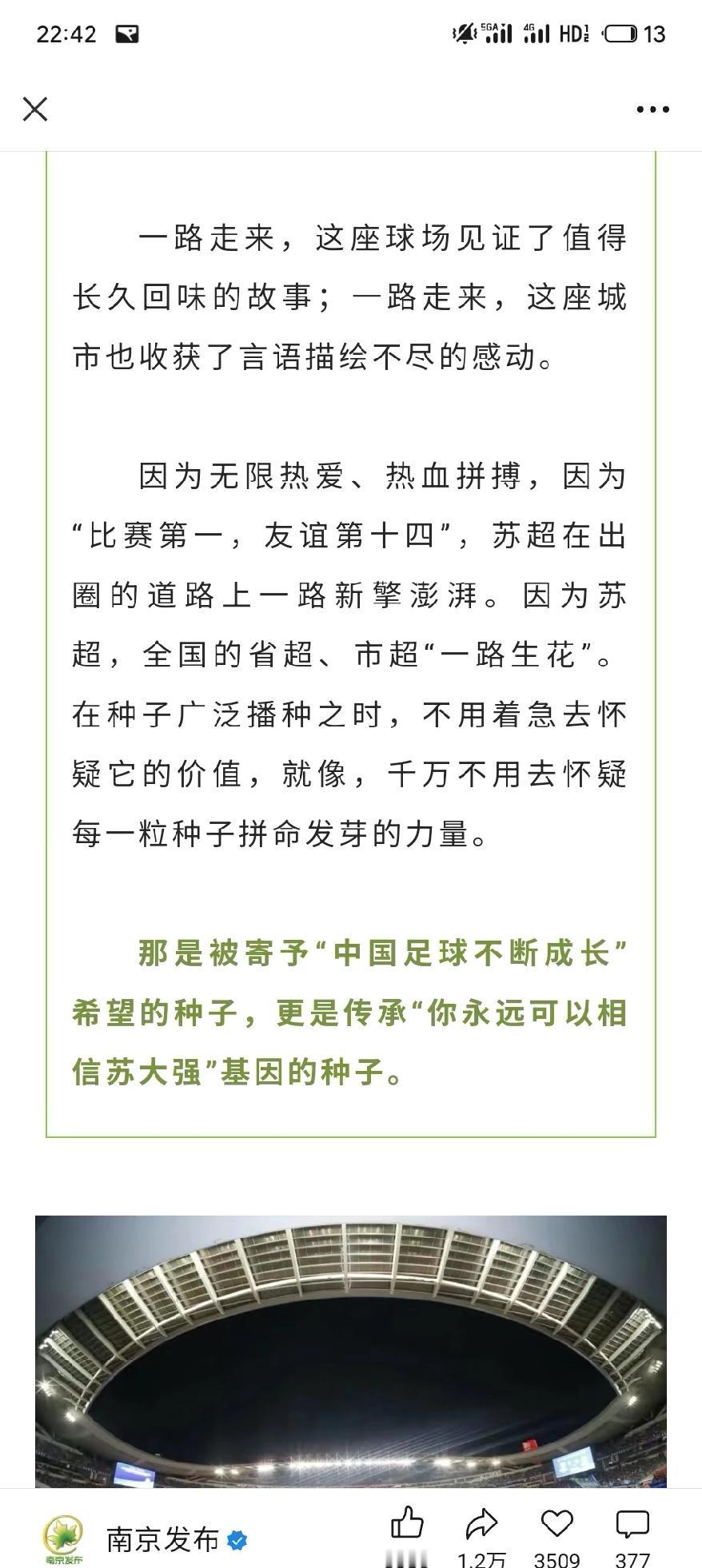 苏超结束,南京发布又封神了。 每次都能让人热泪盈眶,听听结尾这一句 我们从苏超攫取能量,又用这份能量去翻越层峦叠嶂,也为后来者点燃激情,让奋力拼搏成为一场场壮阔的接力。我们,都在悄悄给自己人生添上一画。