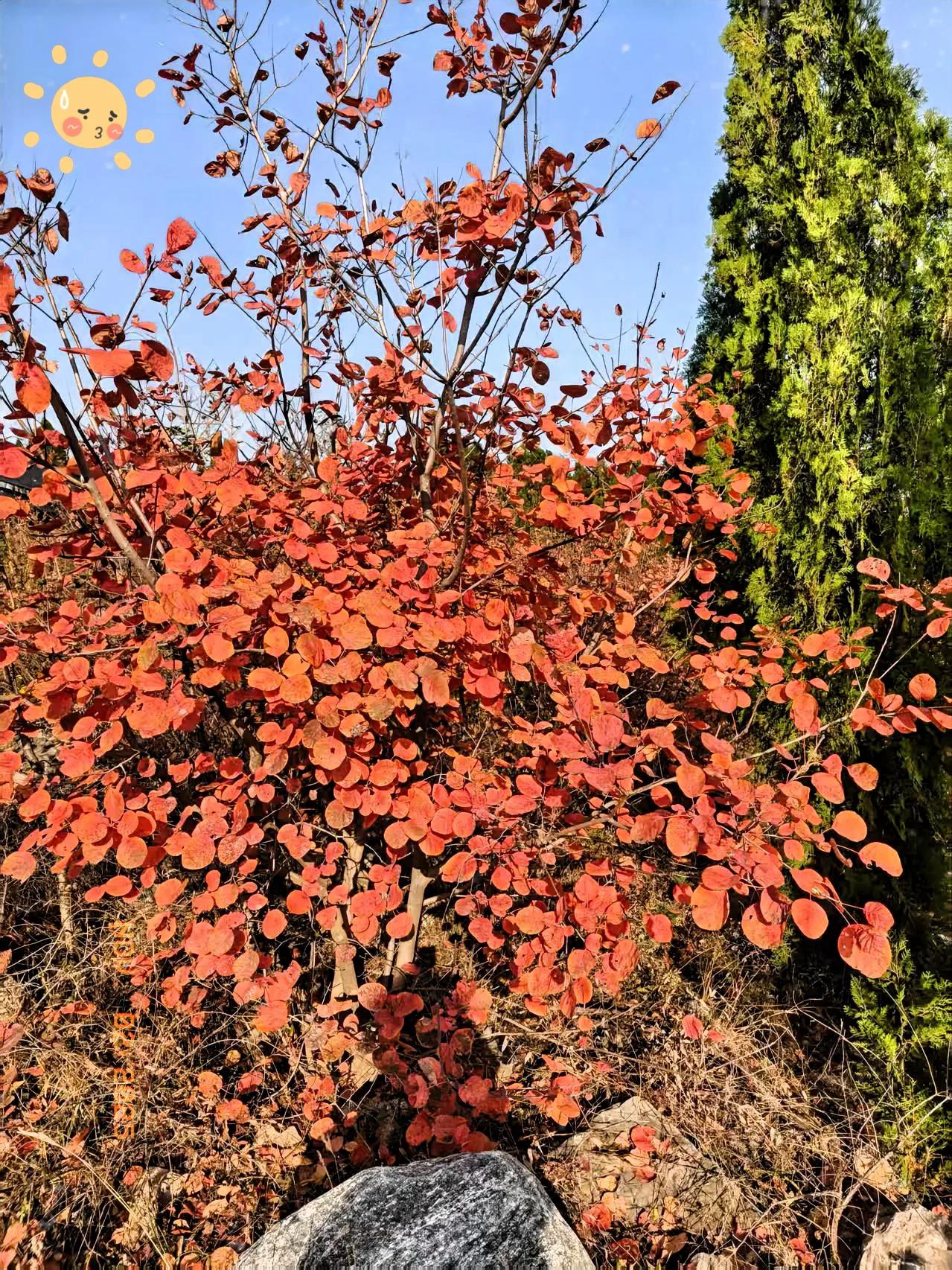 深秋的风,把枝头染成了一片火红。那是一棵黄栌,叶子像被点燃的小灯笼,一簇簇、一团团,在蓝天的映衬下,红得热烈而明亮。 阳光透过叶缝,洒下斑驳的光影,落在地上,也落在旁边那棵翠绿的柏树上。红与绿,暖与冷,在这秋日的画卷里,交织出一种独特的和谐。 脚下的枯草和石头,默默见证着季节的更迭。一阵风吹过,几片红叶缓缓飘落,像是给大地铺上了一层红毯。 这一刻,时间仿佛慢了下来。我站在树下,看着这片火红,心里也跟着温暖起来。原来,秋天不只是萧瑟,它也可以这样热烈,这样动人。 要不要我再帮你写一个秋日黄栌的诗词版本,让画面更有诗意?