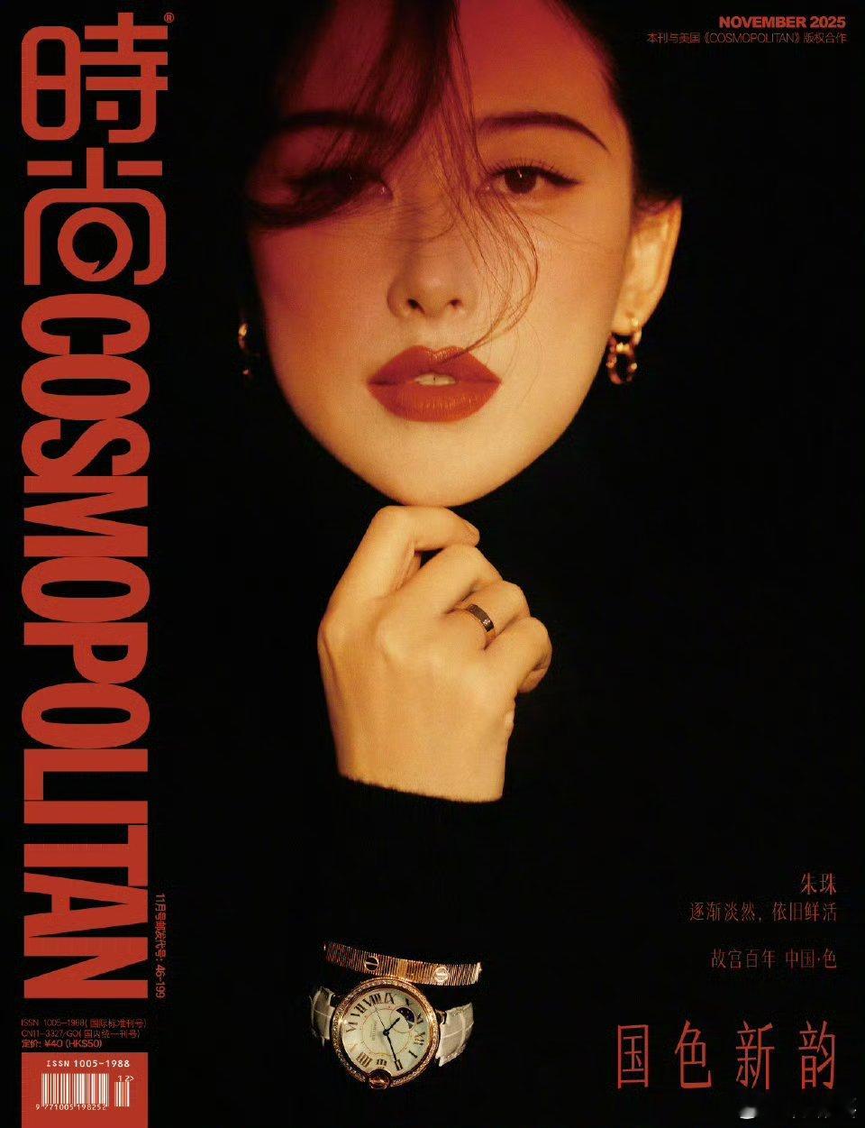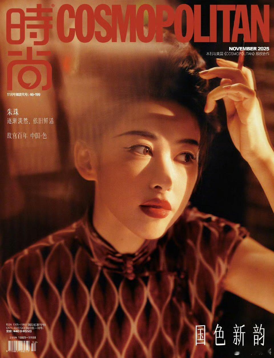 朱珠还登上了11月刊的封面,美成了一首诗。