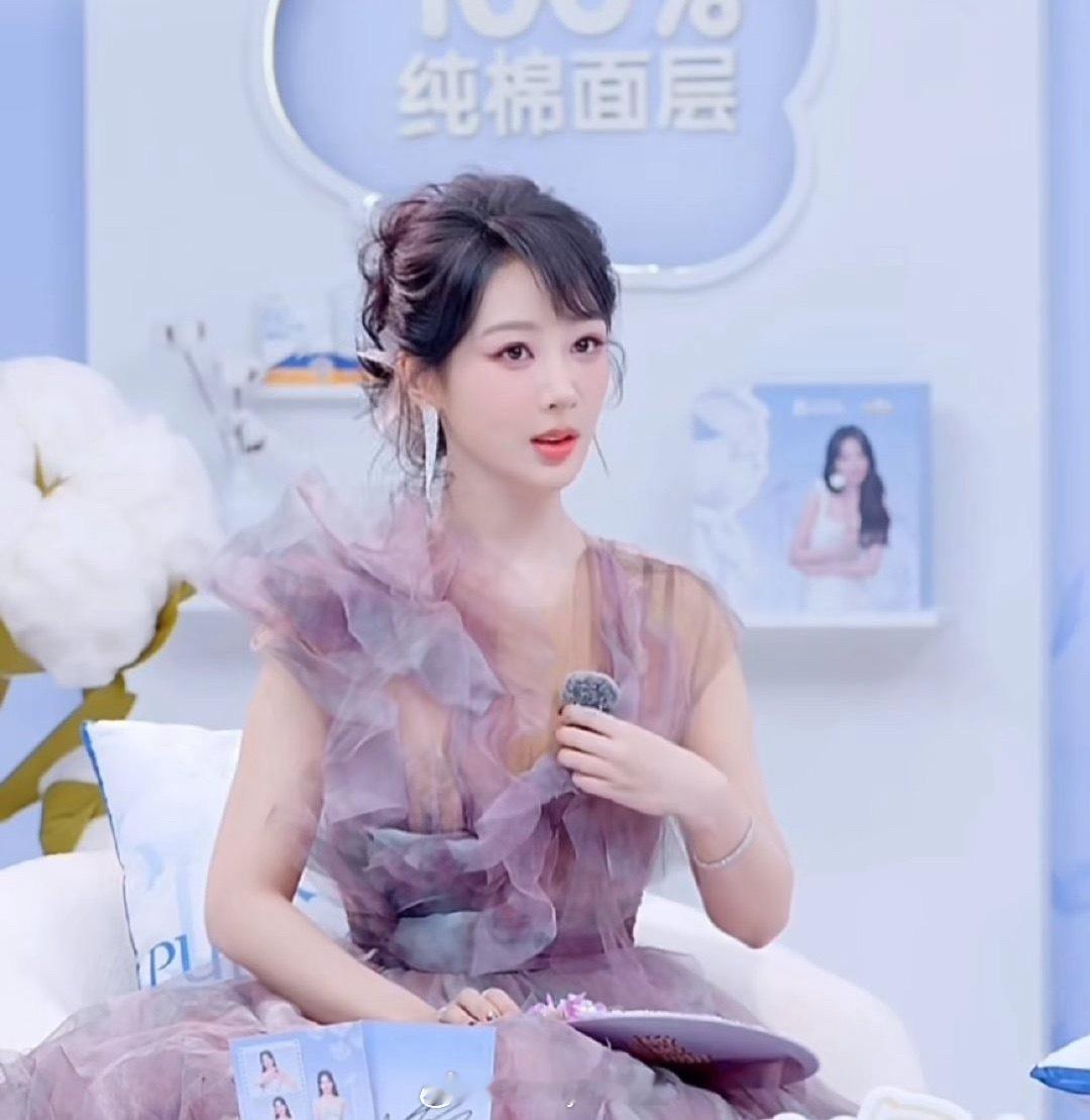 杨紫今天的直播截图,穿了一袭紫色长裙,状态怎么样?
