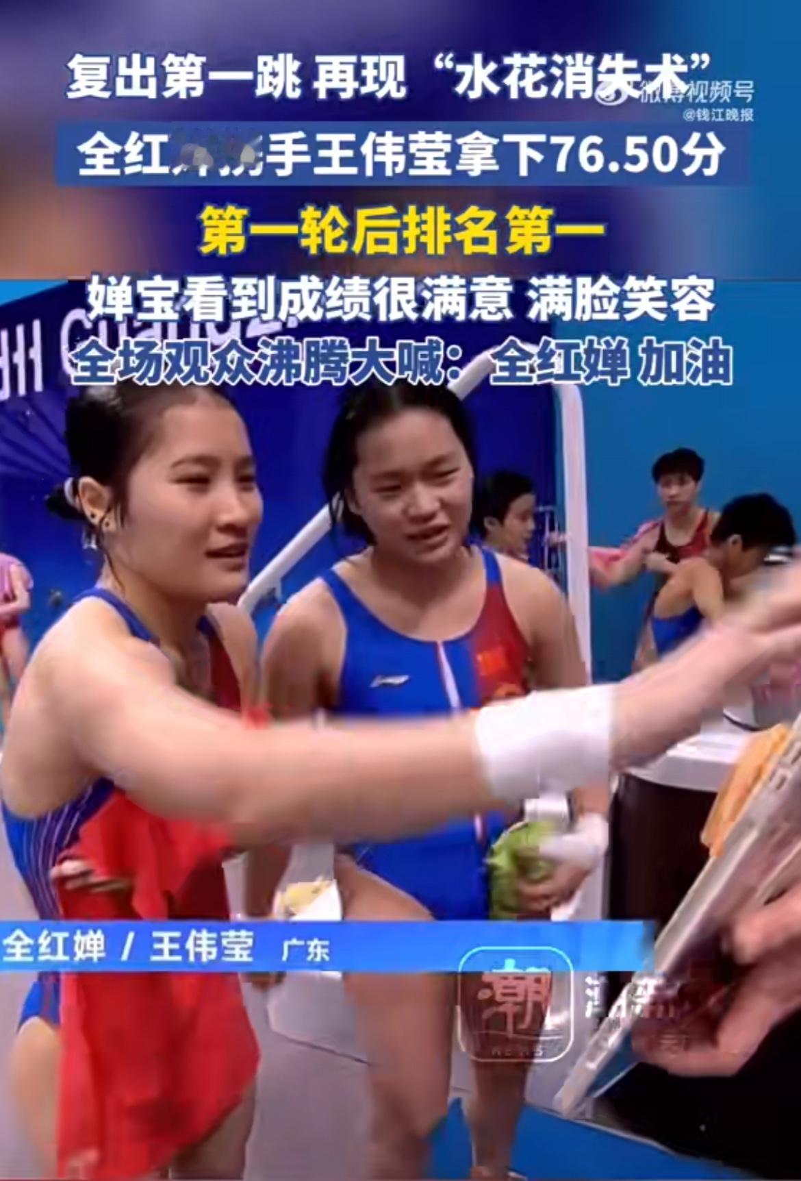 王者就是王者! 壮实了依然还是王者! 全红婵在全运会上的惊艳复出! 第一轮就以76.5分排名第一! 本以为全妹因为发育期体型变化会影响成绩没想到她依然是巅峰状态, 动作做得非常好,水花也非常小, 入水也更加垂直了! 天哪,壮了还是能控水花,太牛了! 全妹真的太棒了! 面对发育期的挑战, 她又一次战胜了自己! 继续支持全妹! 你是我们的骄傲,是湛江的骄傲!全红婵