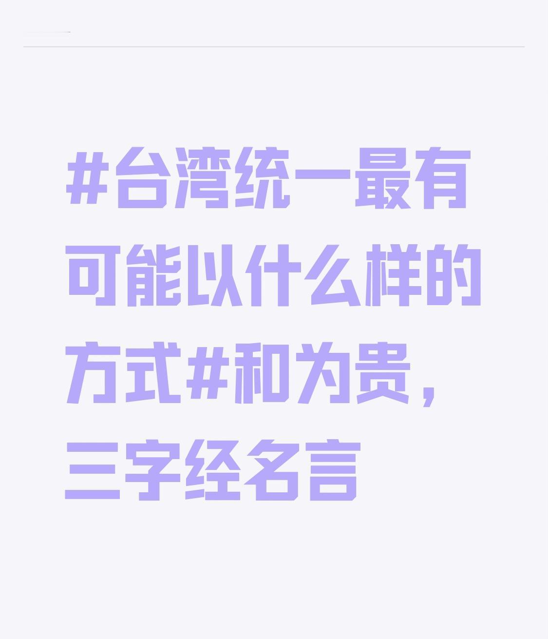 台湾统一的方式备受关注。中国一直坚持“和平统一、一国两制”,这是解决台湾问题的基本方针,也是最理想的方式。短期和统不动刀枪、得民心,能让两岸融合发展,像毛泽东提出的“一纲四目”就是早期探索。但目前台湾部分民众受“台独”思想影响,认为大陆落后,回归好处不明显,导致和统条件不成熟。 非和平方式也存在可能。以目前大陆军力,武装统一没问题,但成本高,美日可能介入。“北平模式”以武促统,通过军事威慑让台湾放弃抵抗。“和为贵”是传统智慧,还是希望能和平统一,让两岸同胞携手共赴美好未来。