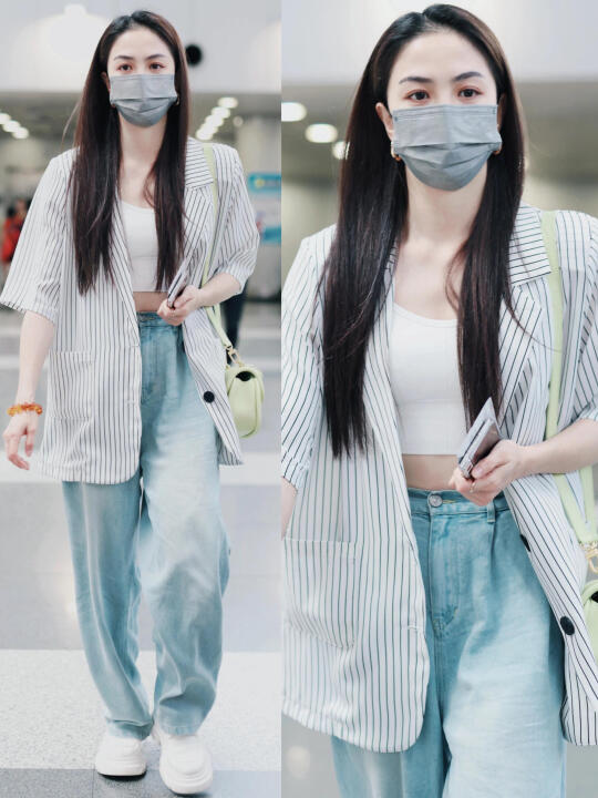夏日清新穿搭,条纹背心+高腰短裤,轻松自在,元气满满!🌞👗💃